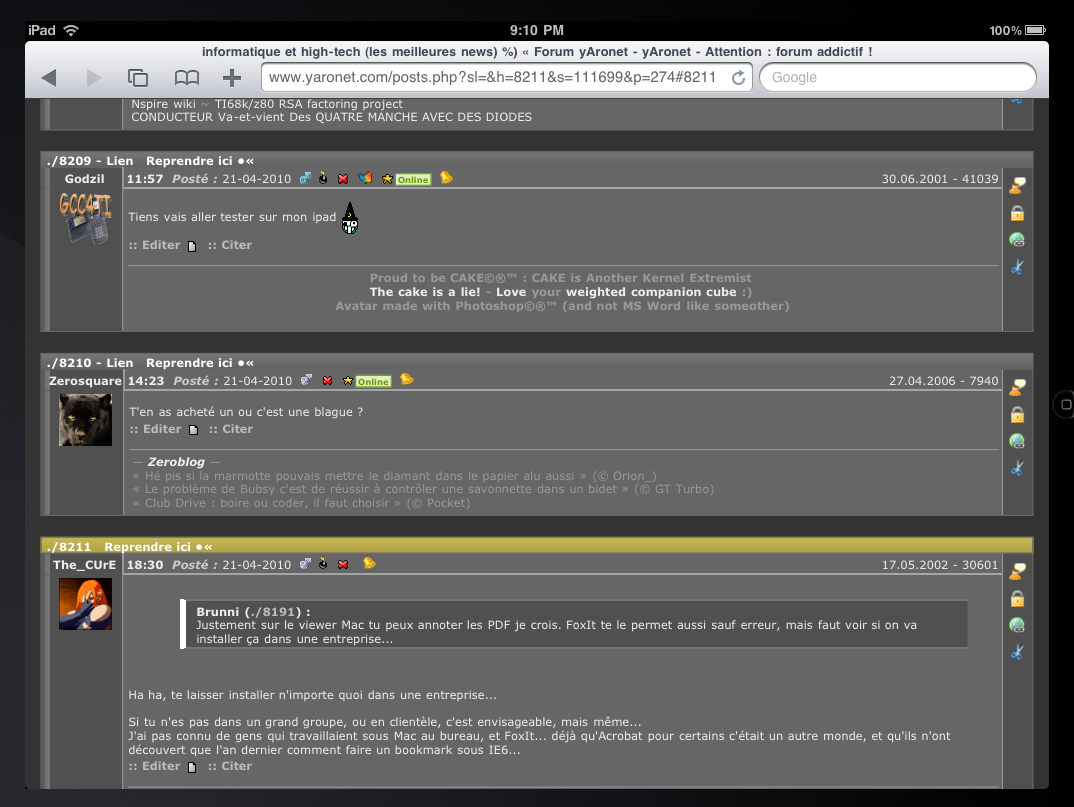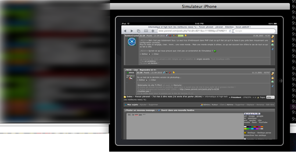 Pas mal, j'avais peut être sous estimé ce qu'on pourrait faire avec. Bon si j'avais envie de me faire chier je testerais la vitesse avec les différents navigateurs, c'est ce qui risque d'être le plus gros problème à terme. Pour l'instant on a lesquels qui supportent ça? J'ai testé avec Firefox et Safari et le framerate est pas top.