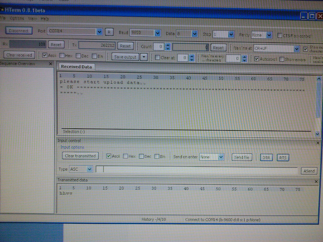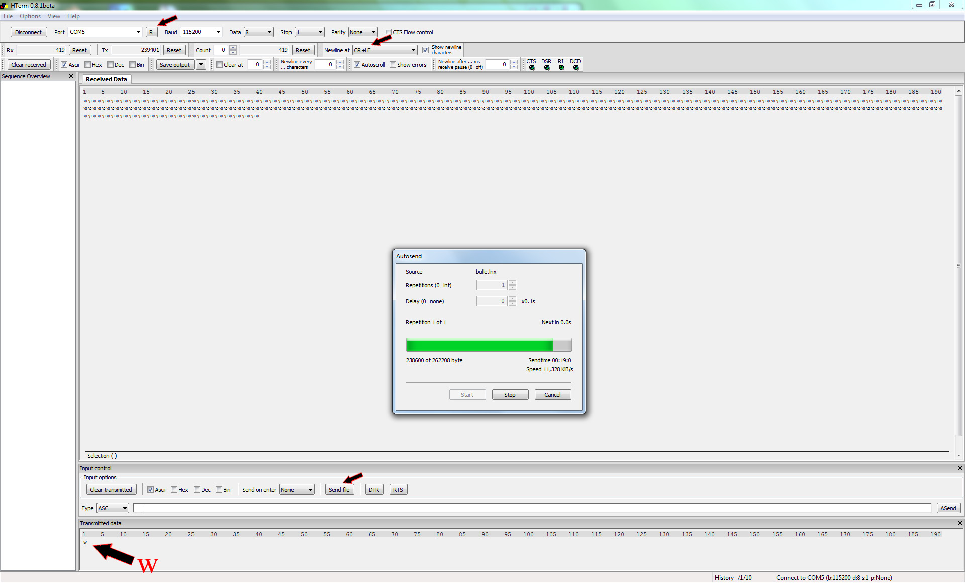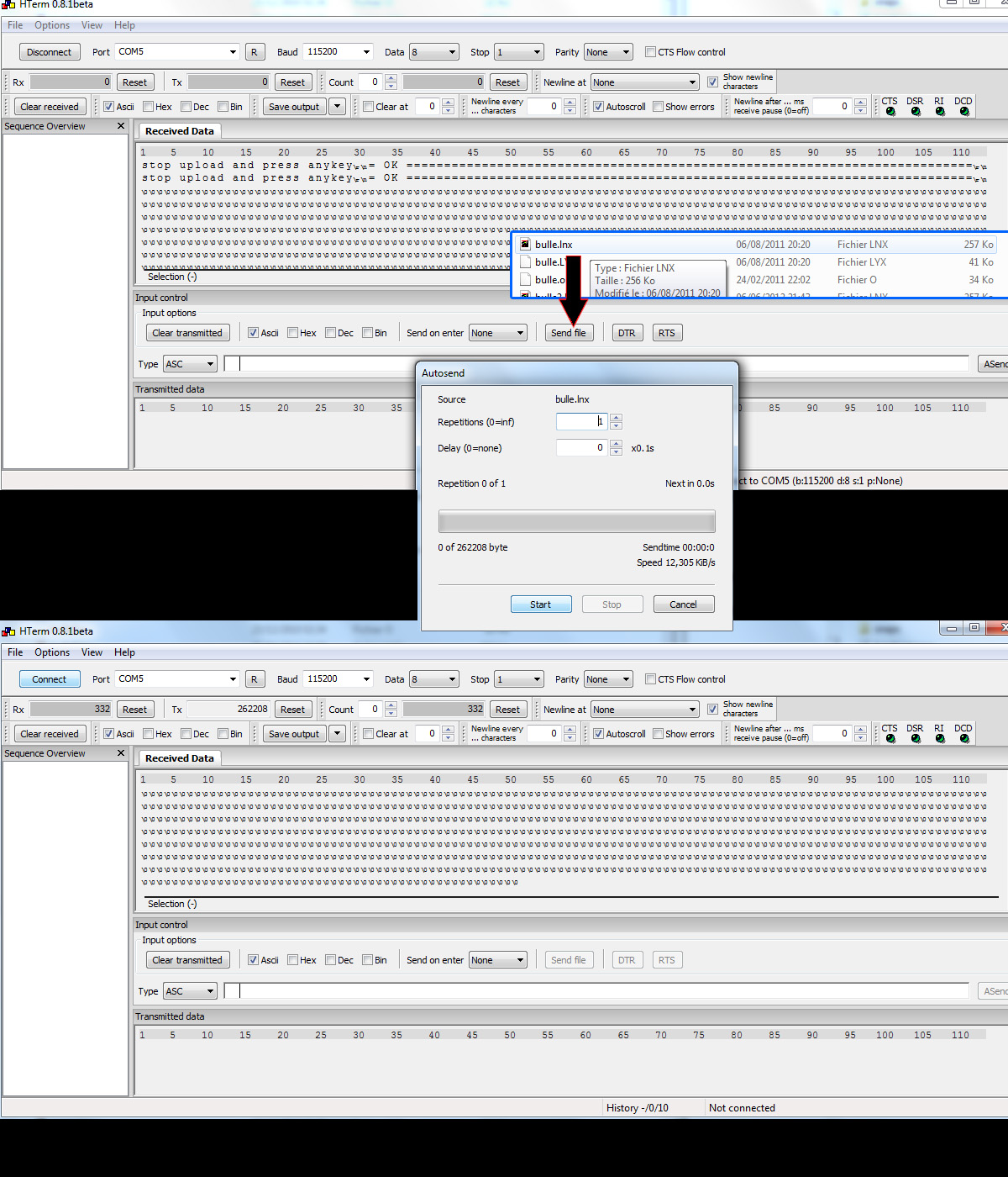 c'est du texte qui apparait dans le rectangle "received data"