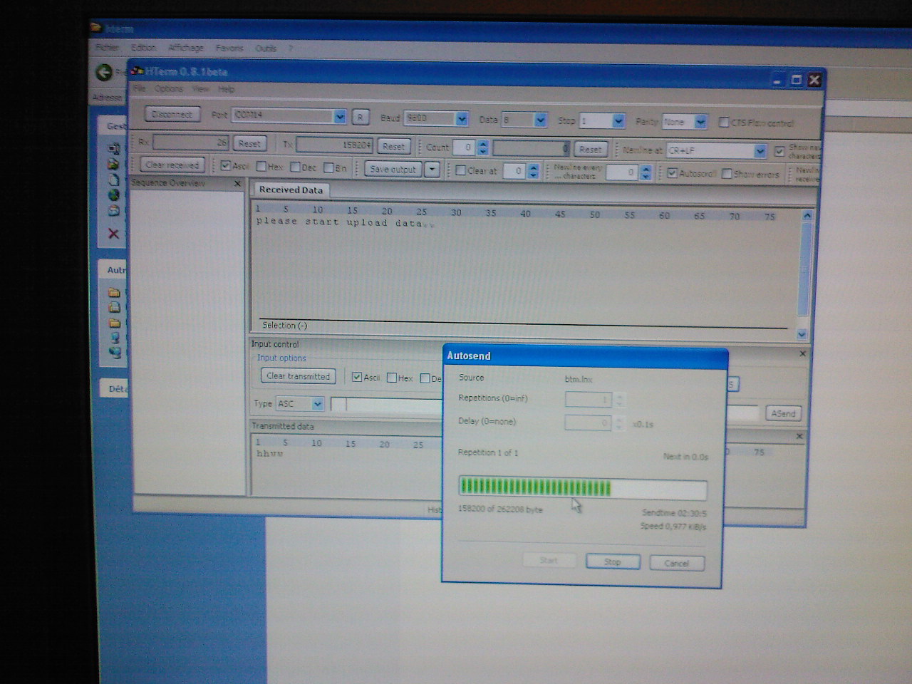 - ta flashcard et hterm sont bien configurés à la même vitesse ?