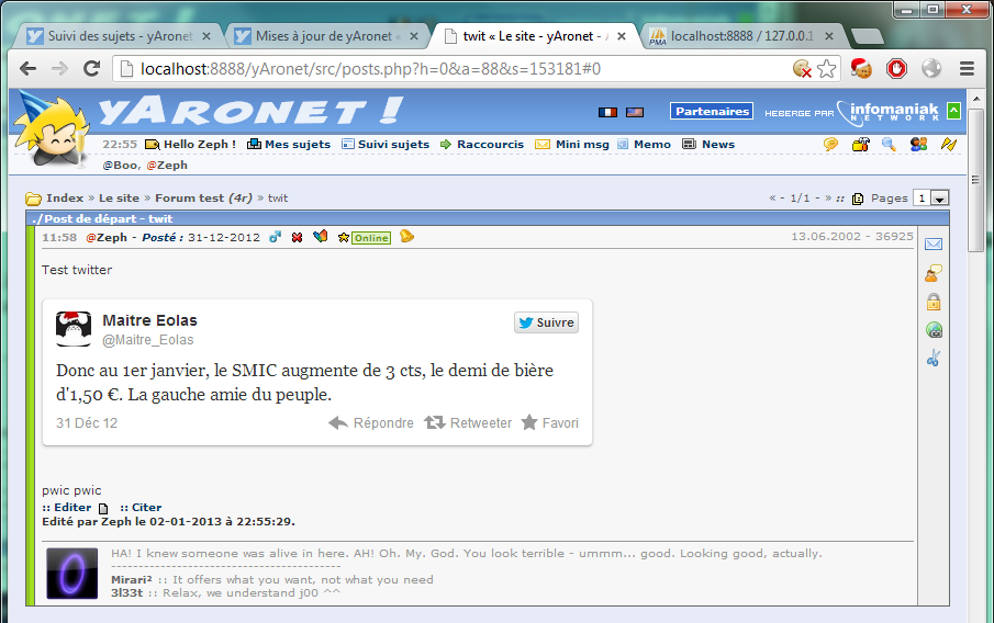 Bon je viens de faire la mise à jour donc l'intégration Twitter est dispo :