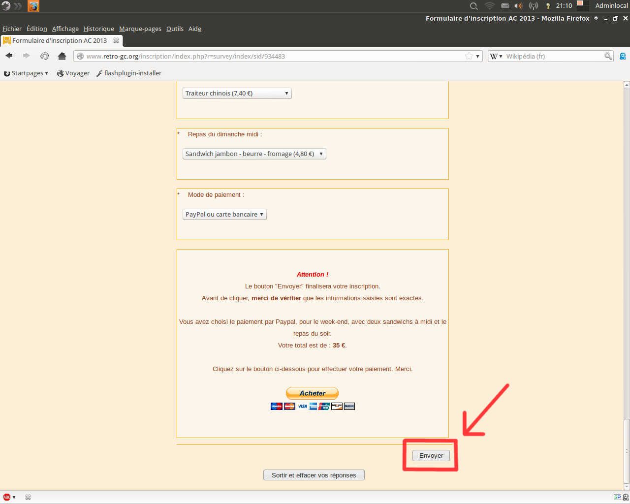 Pensez à bien valider le formulaire en appuyant sur le bouton ENVOYER en bas de la page (après le prix total) !
