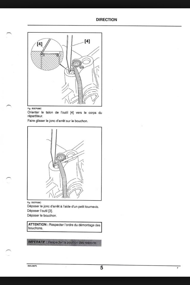 Tu remontes d'abord le bouchon de gauche, et ensuite, avec une tige, tu le repousses d'en face pour le positionner. A ce moment là, il te faut remonter le porte filtre (avec éventuellement le filtre si tu as décidé d'en mettre un) de retour CJDJ avant de remonter le bouchon d'en face. Ensuite tu remontes les autres bouchons et normalement, ils devraient tous se mettre en place. Cette méthode fait remonter en premier le seul bouchon sur lequel il n'y a pas de ressort qui appuie.