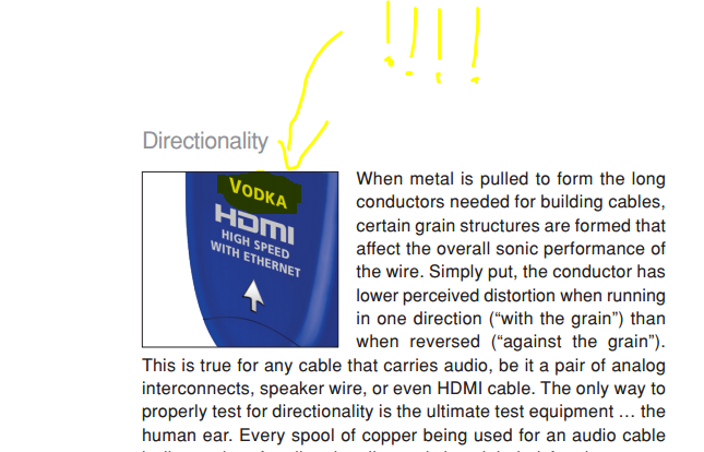 Le pire est que les acheteurs de ces gadgets croient sincèrement ce qu'ils racontent, tout comme il y a des gens qui croient mordicus à l'astrologie, ou des mecs qui sont persuadés que leur voiture est plus puissante depuis qu'ils ont mis de l'huile "Magic Tuning™" dans leur moteur. Plutôt que d'accepter la réalité (la perception humaine est fortement influençable, et leur grigris hors-de-prix sont des arnaques), ils se raccrochent à toutes les branches qu'ils peuvent trouver. C'est un bel exemple de dissonance cognitive.