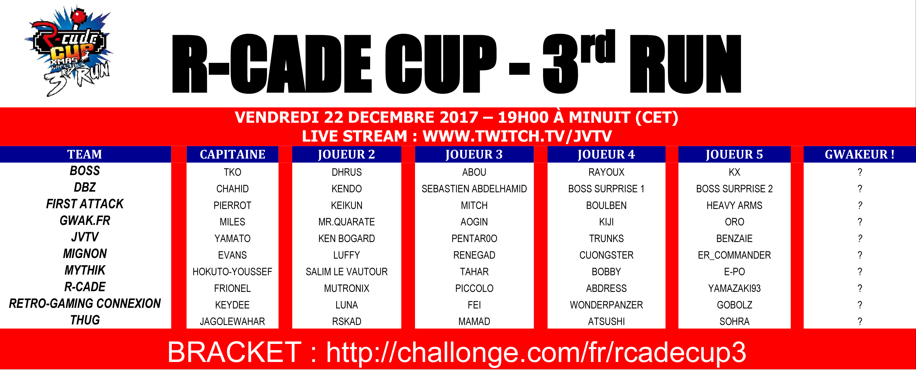 Voici la liste des équipes et des joueurs pour cette 3e édition :