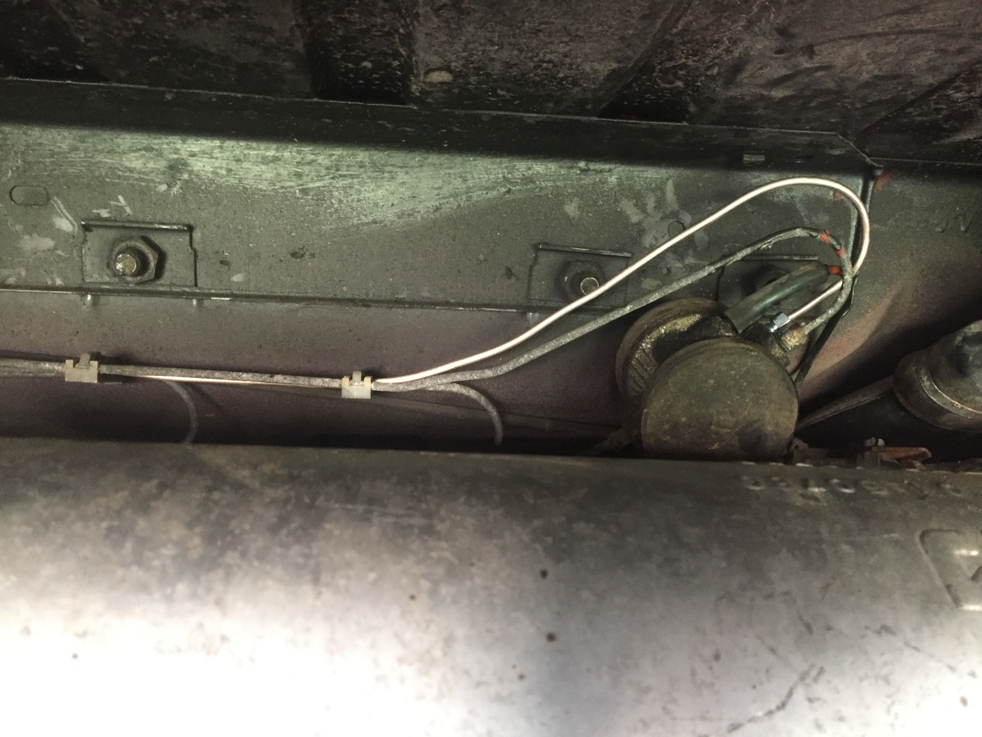 Comme ça se produit lorsque la voiture monte, je suppose qu'il ne s'agit pas des freins? Du coup, de ce que je vois, un coté va vers le correcteur de hauteur arrière, l'autre bout doit aller vers la vanne de sécurité, qu'en pensez vous?