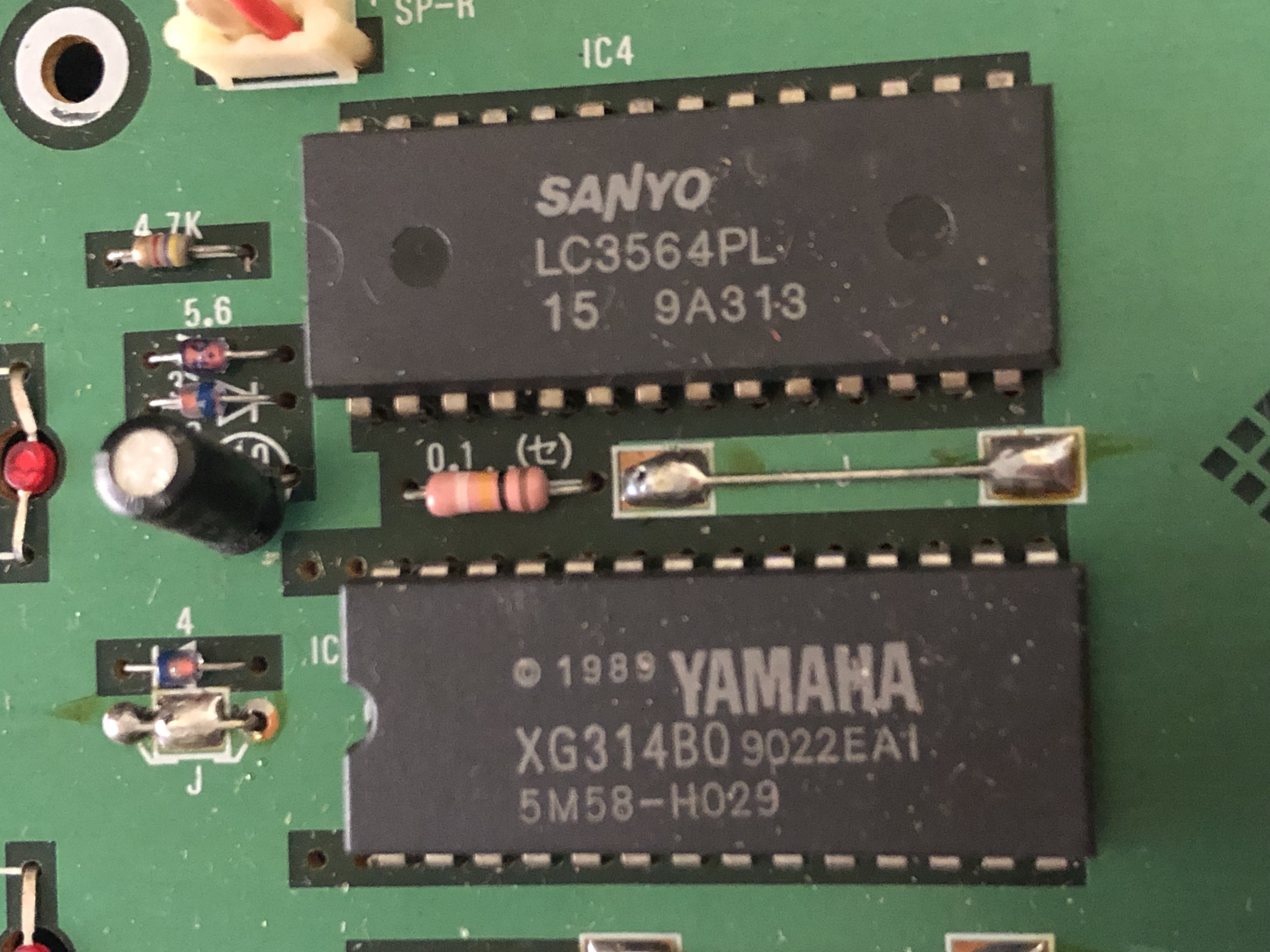 Autre chose etrange, a quelque année d'écart la construction interne est tres differente entre les different synthé. La on sens un produit bien fini, avant c'est un peu plus.. bordelique, entre cable soudé sans connecteurs, jumper sur le PCB a coup de nappes et d'autres trucs amusants.