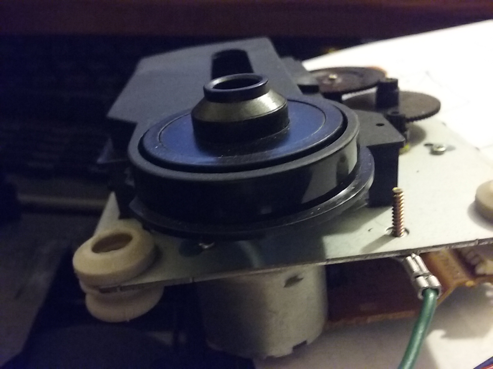 En la recevant, il y a d'abord eu un souci avec le "spindle", là où le CD repose. Il était enfoncé, mais j'ai réussi à le remettre à niveau sans que le CD ne frotte