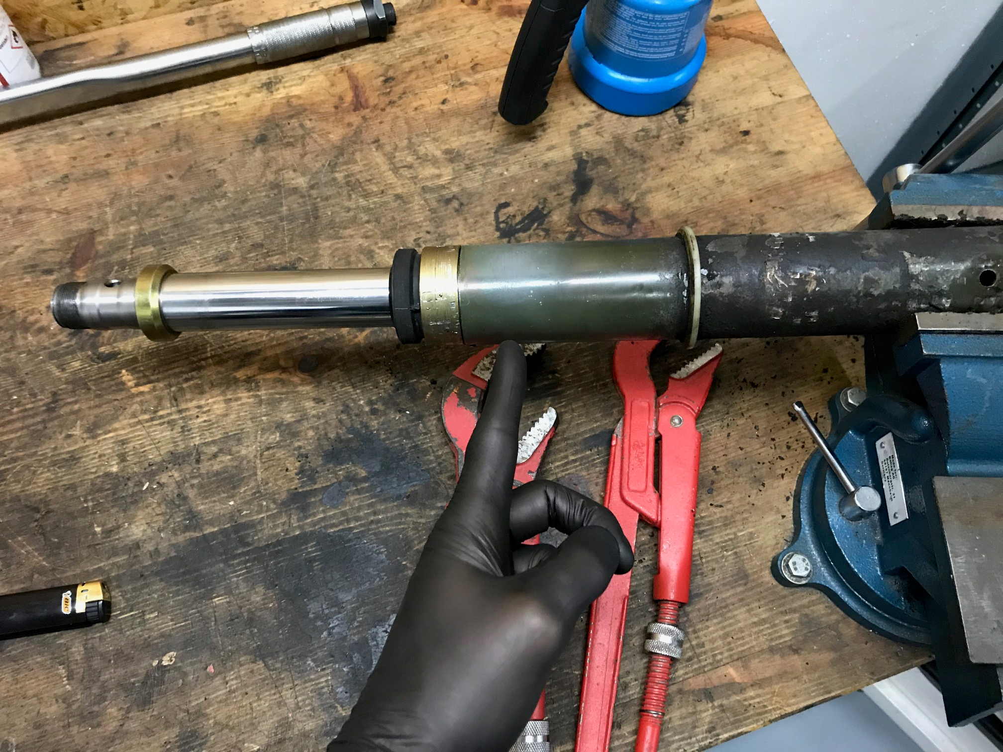 Fabi1 Le 03/11/2019 à 03:06 Ça ne me paraît pas très prudent de serrer le corps du vérin comme ça dans un étau... ni de chauffer.