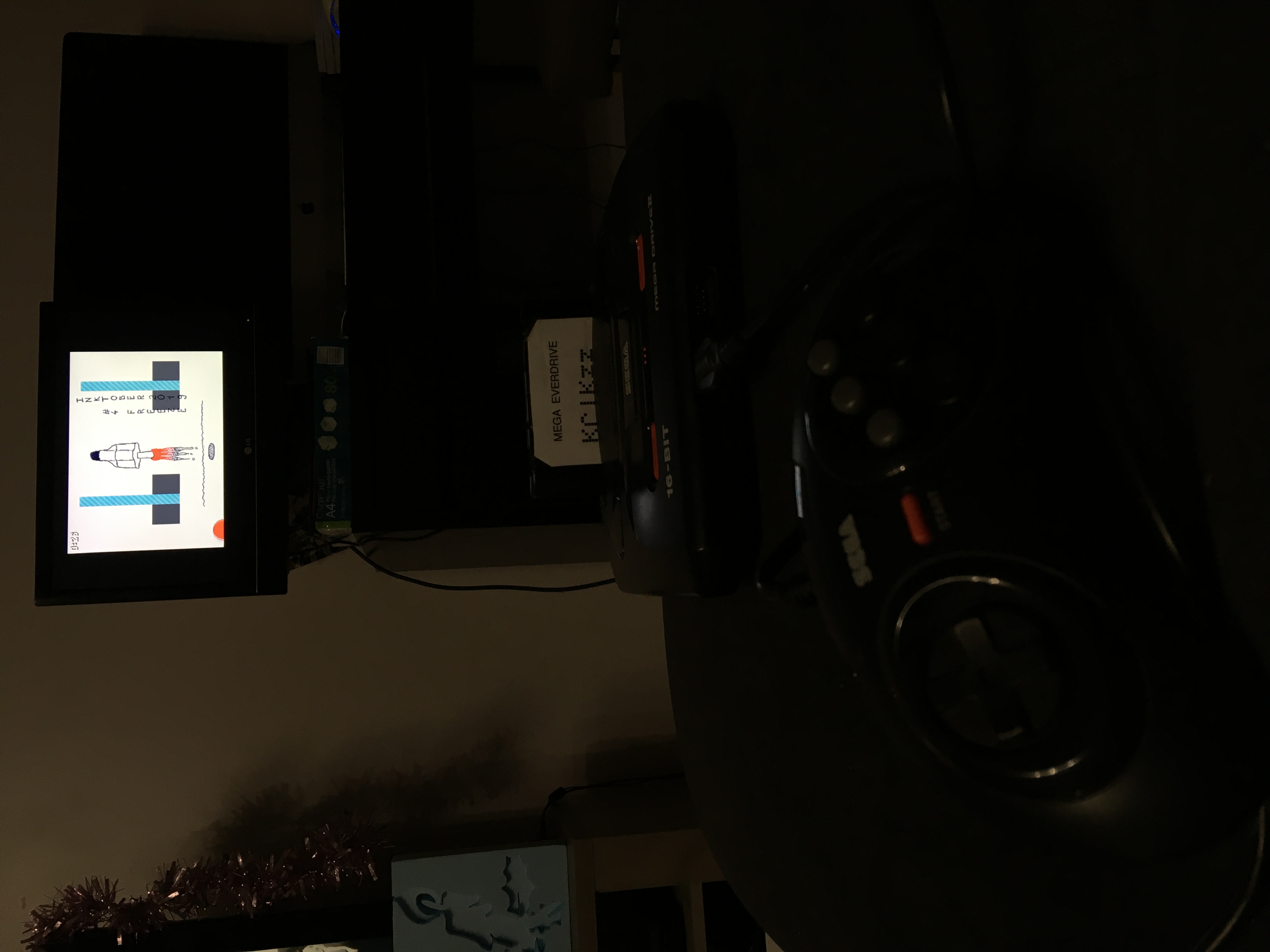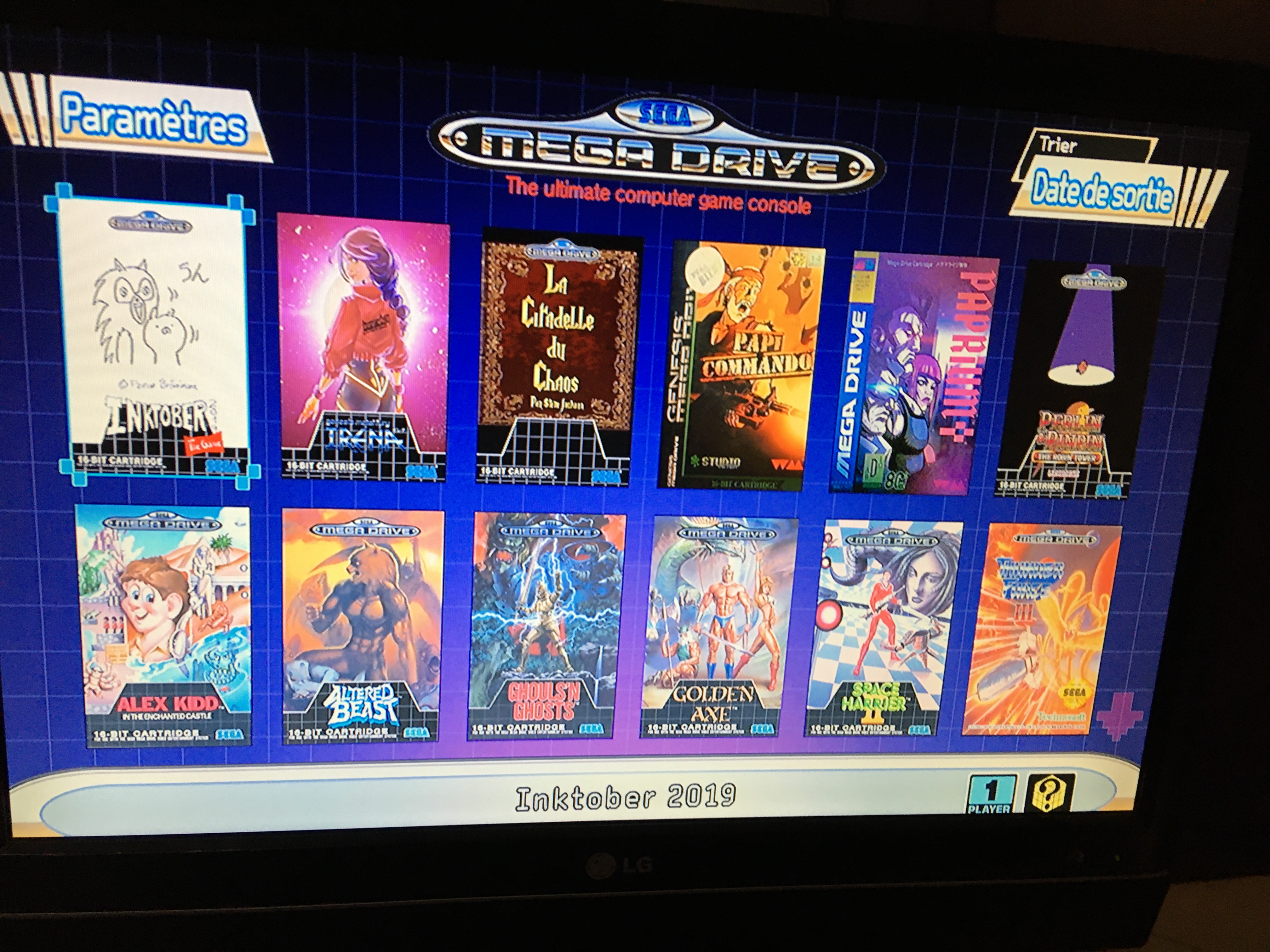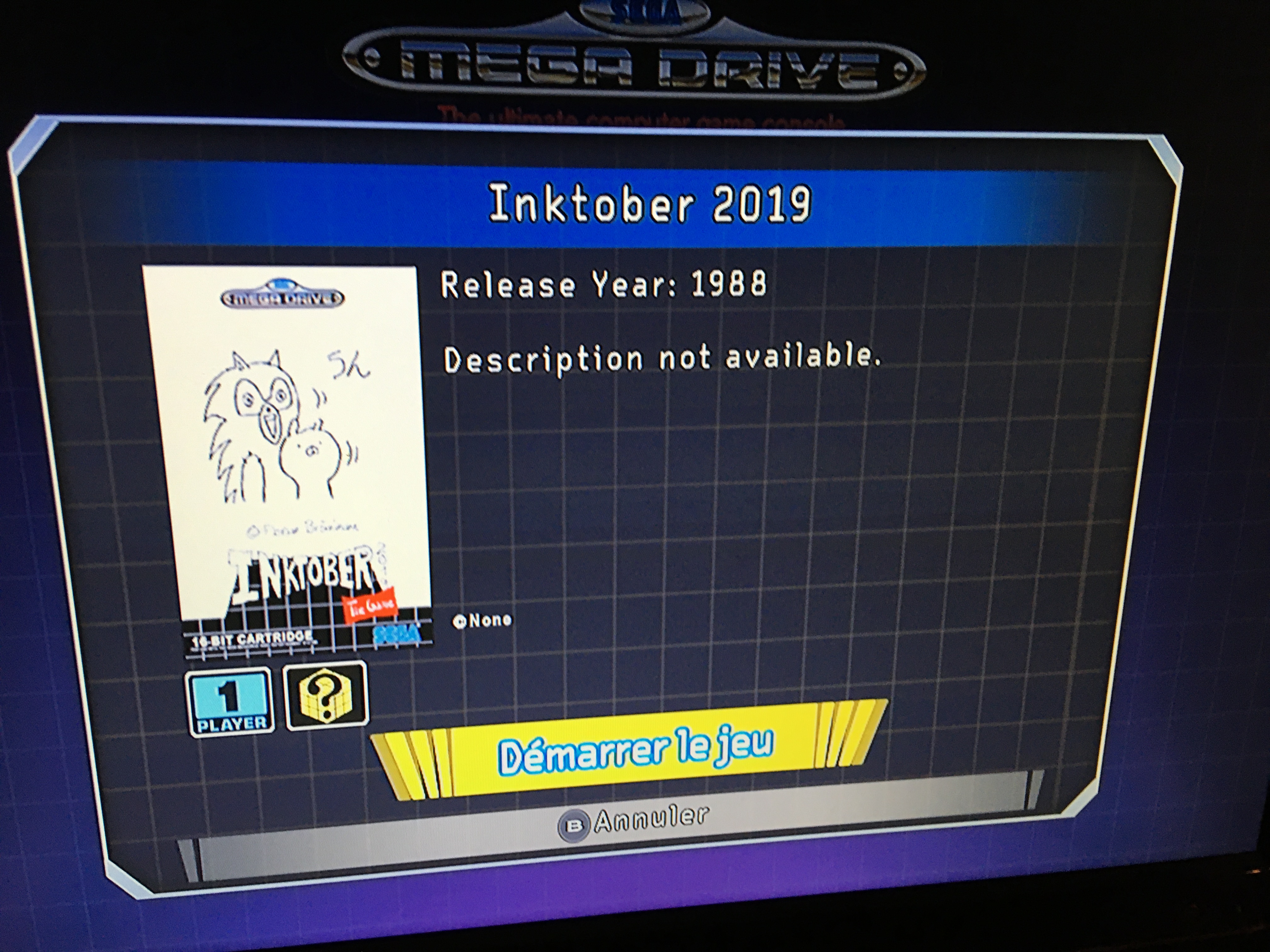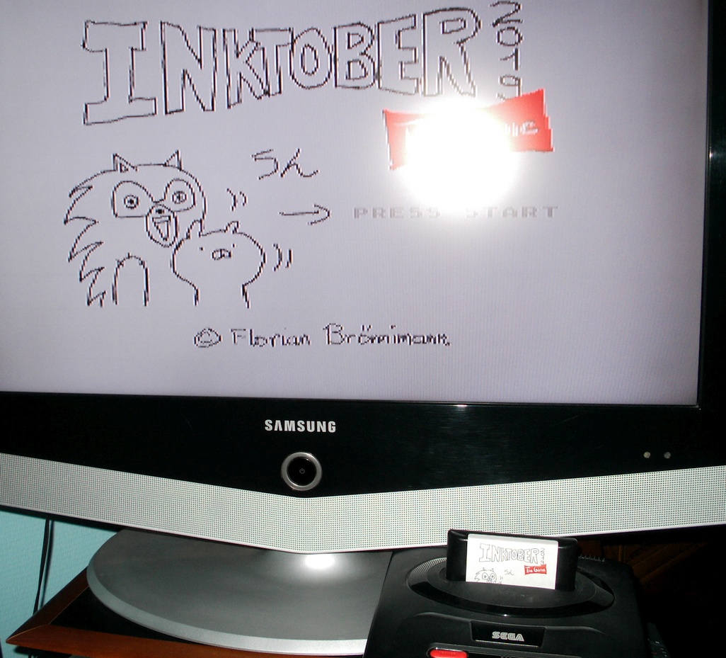 Donc le principe c'est que je me suis dit "en octobre j'ai dessiné c'était cool, mais en novembre qu'est-ce que je fais ? Un jeu avec, bien sûr !". Le principe n'est arrivé en réalité qu'assez tard, au début j'hésitais à faire une simple visionneuse d'images. Après avoir commencé je me suis dit que j'étais gland d'avoir choisi la Mega Drive car elle n'est juste pas faite pour ça