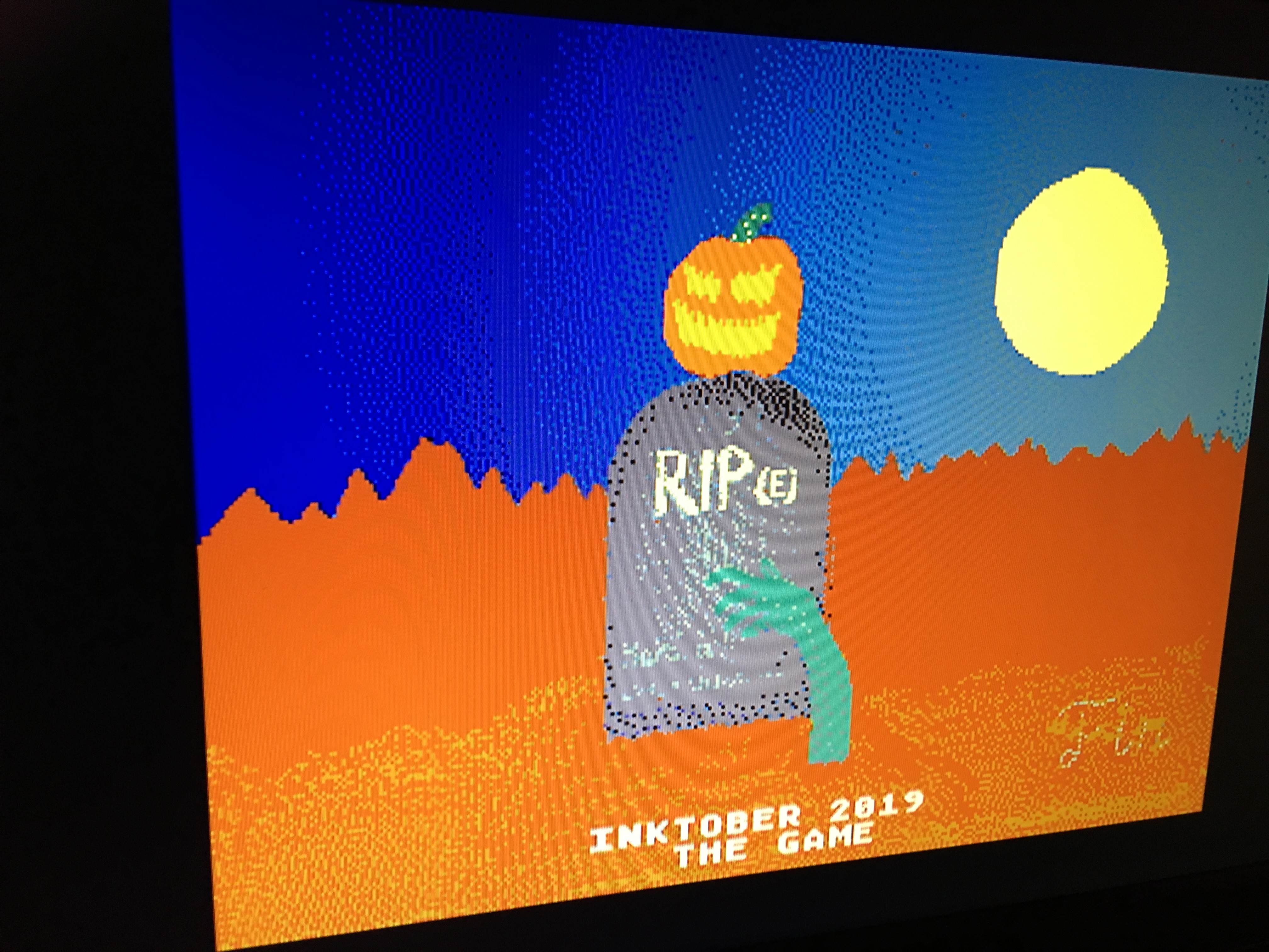 trop de limite de couleurs, que ce soit la master palette (8 nuances par couleur primaire) comme la palette (normalement 16 couleurs par image, mais avec mon super convertisseur j'ai pu utiliser étaler les plans sur 3 palettes, soit "46 couleurs").Du coup je me suis dit qu'il fallait une vraie raison pour faire cette boucherie. Puis m'est venue l'idée des effets shadow/highlights, que pratiquement personne ne savait maîtriser, simplement parce c'est vraiment dur en effet. Après avoir bien lu sur le sujet, ça m'a donné d'avoir pour mission d'éclaircir l'image. Au début je pensais à un truc avec des vieux avions de la guerre qui devaient balancer des caisses, qui éclaircirait la zone où elles passent. Plus tard c'est devenu une balle et j'ai inclus une véritable gestion de la physique, car ça me permettait d'en faire un truc plus intéressant, et un peu plus unique. J'ai pu rajouter des éléments de gameplay, comme les trous noirs (car j'ai pensé à Nil), les bumpers, etc. Au final j'ai mis un mois exactement à le coder, j'ai glandé la première partie de novembre, donc ça a donné du 16/11 au 15/12.