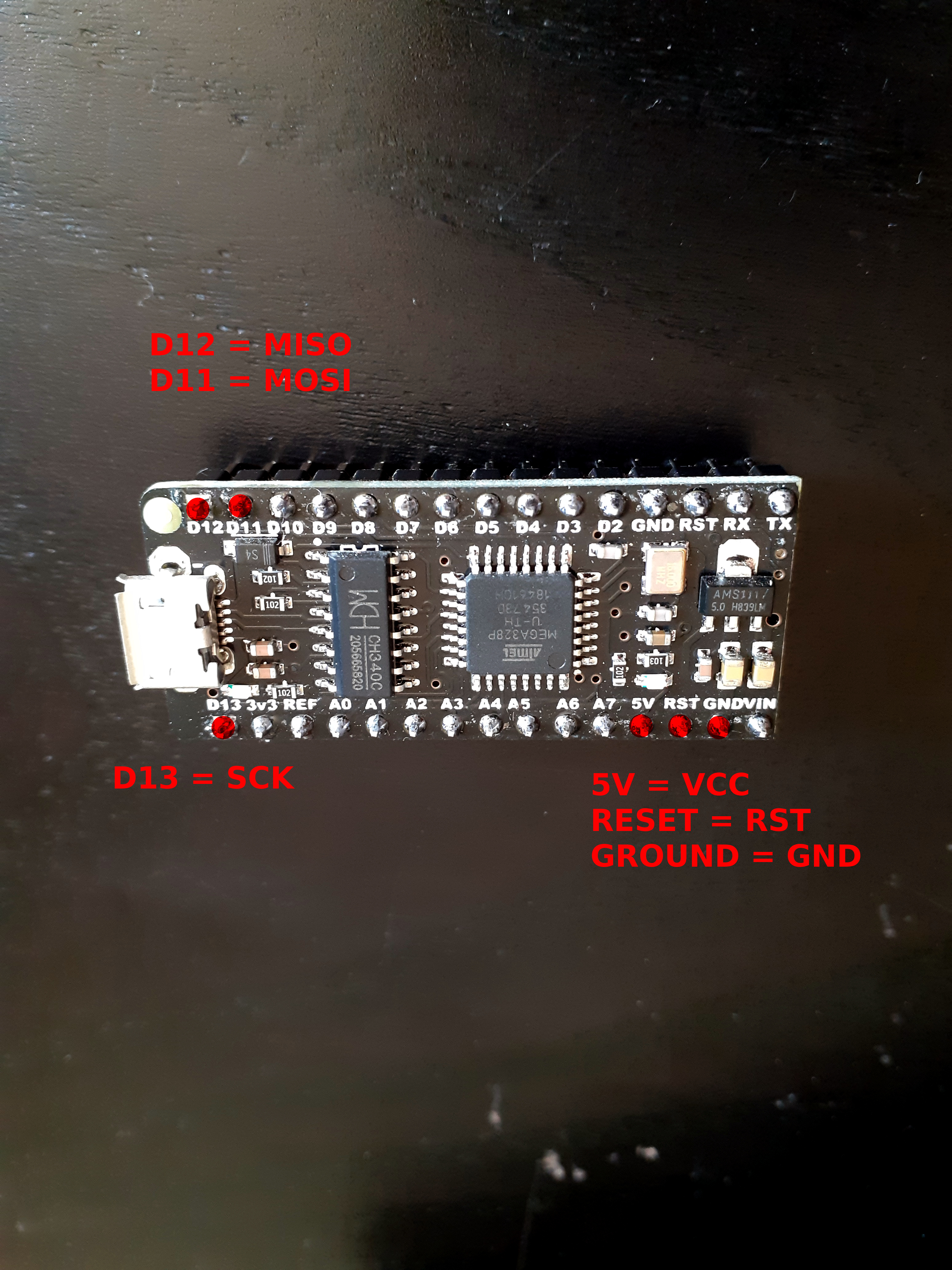 Bref si vous avez une solution miracle en mode Mc Gyver de l'AVR pour flasher cet arduiclone avec 3 bouts de ficelle et un trombone je suis partant
