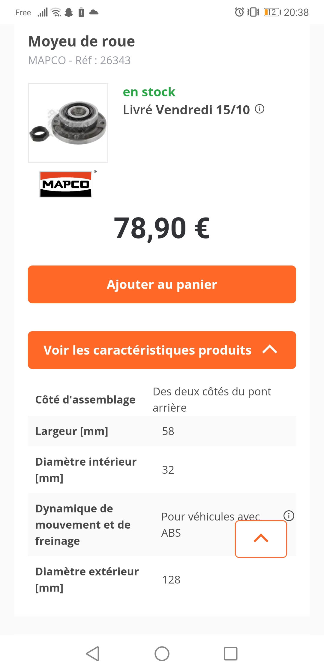 Sur m... A... Il y a bien un moyeu complet abs à 78e je vais voir déjà démonter l'autre et peut être comme tu dit voir l'état des bras en même temps