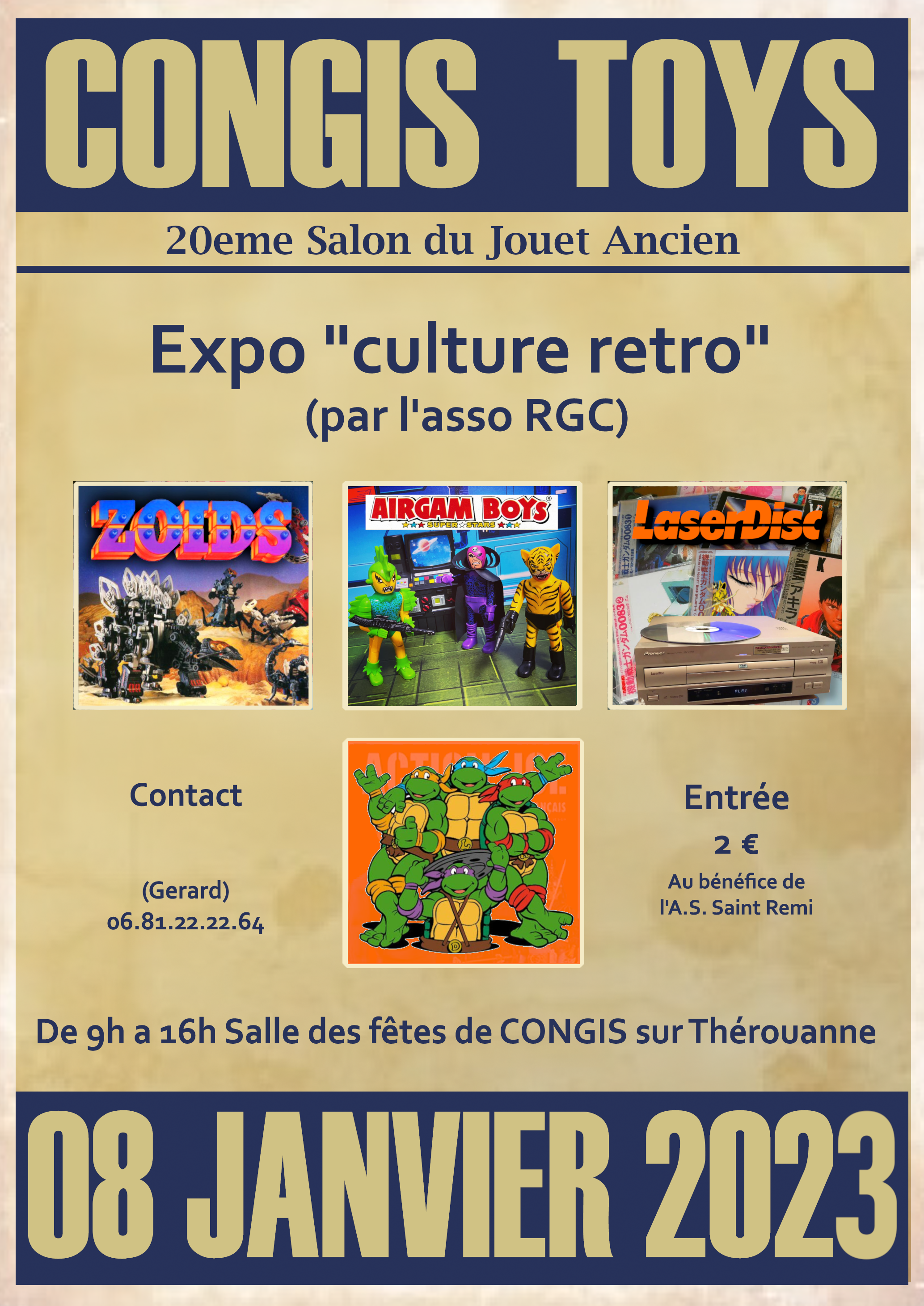 Expo "Culture Retro"- 2023www.facebook.comL'asso RGC sera de retour cette année au Salon du jouet ancien "Congis Toys" en tenant une petite expo dédiée aux jouets et aux media des années 80 - 2000