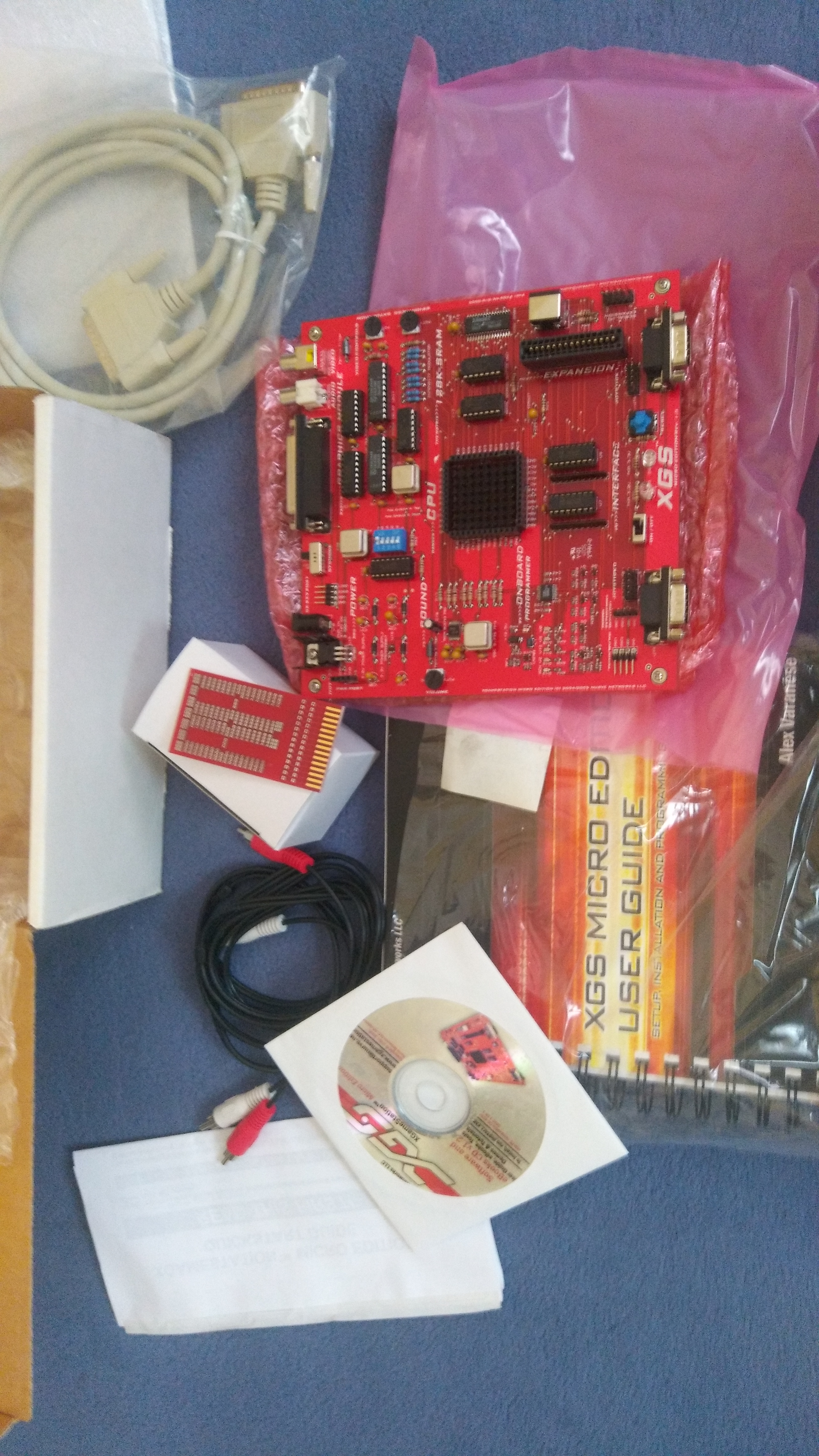 Je vends une console de jeux vidéo conçue par un homme seul au début des années 2000 : Xgamestation de Nurve. Elle n'a jamais été vendue en boutique en Europe. Elle n'est compatible avec aucune autre console, elle est plutôt pour des développeurs de jeux dans un style rétro (mais il existe des jeux à télécharger). Elle se présente sous la forme d'une carte mère sans boitier. La sortie vidéo se fait en NTSC par prise CINCH. il faut un joystick avec prise dite Atari 9 broches (classique !). Transfo fourni mais US 110V, il faut un transfo universel 220V->9V 500 mA polarité + au centre prise Jack. Dans sa boite d'origine, comme neuve, juste allumée pour vérifier qu'elle fonctionne.