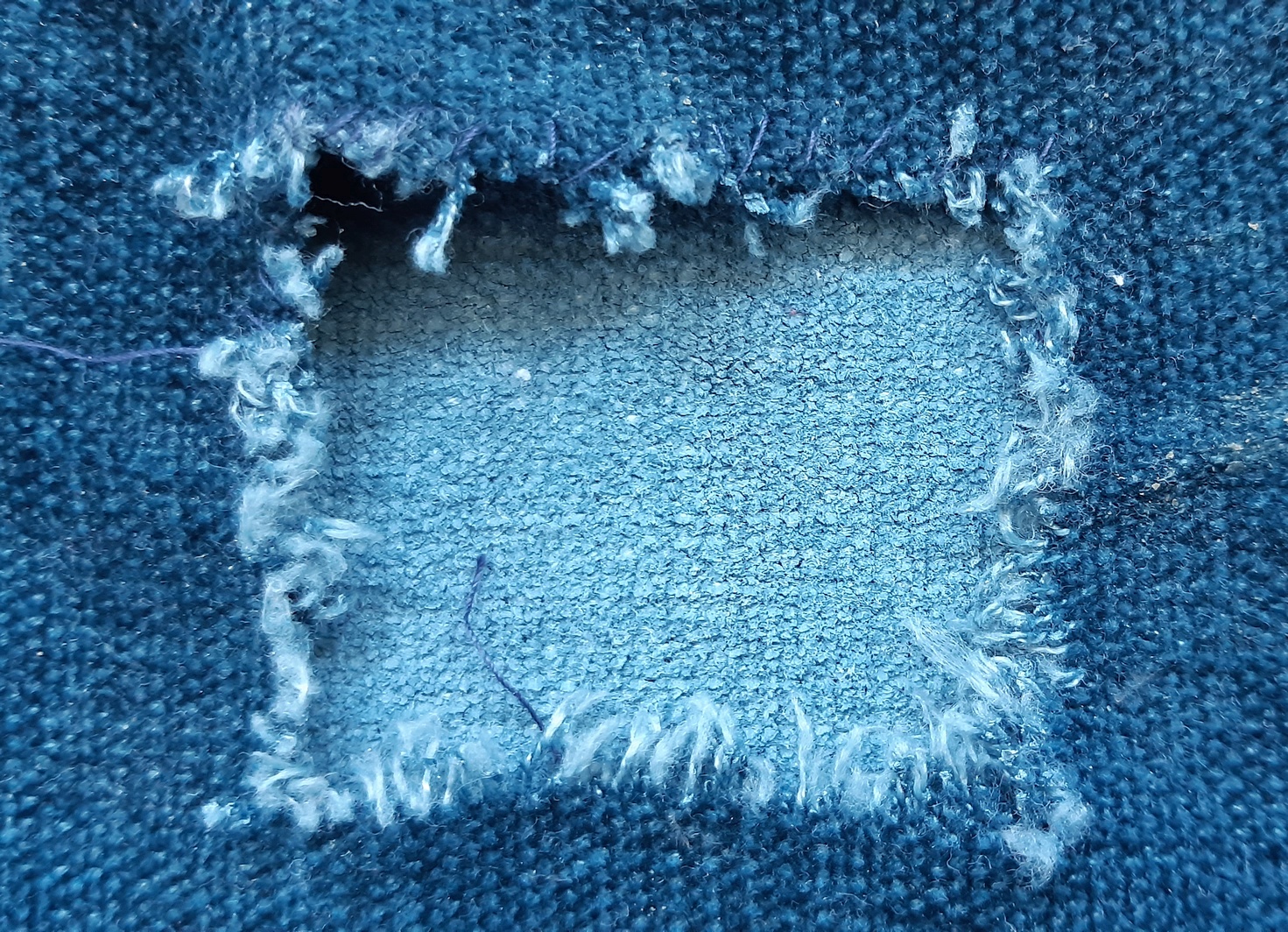 CAALGOOONNNNN [TELLMESOMETHINGIDONTKNOW SHOWMESOMETHINGICANTUSE PUSHTHEBUTTONSCONNECTTHEGODDAMNDOTS] (Si Dieu existe il doit me détester...)Fais gaffe qu'il s'amuse pas à déchirer les vêtements ensuite, mais vu le trou bien orthogonal, peut-être qu'il a envie de coudre un patchwork?