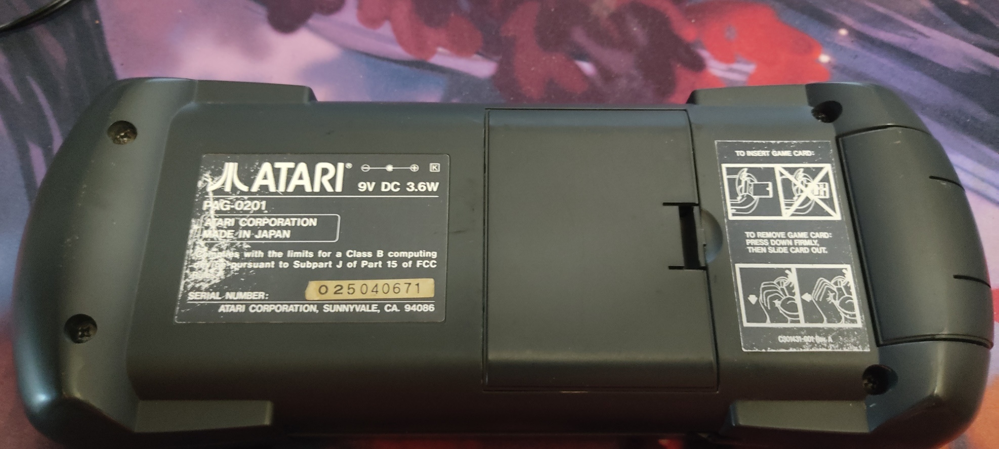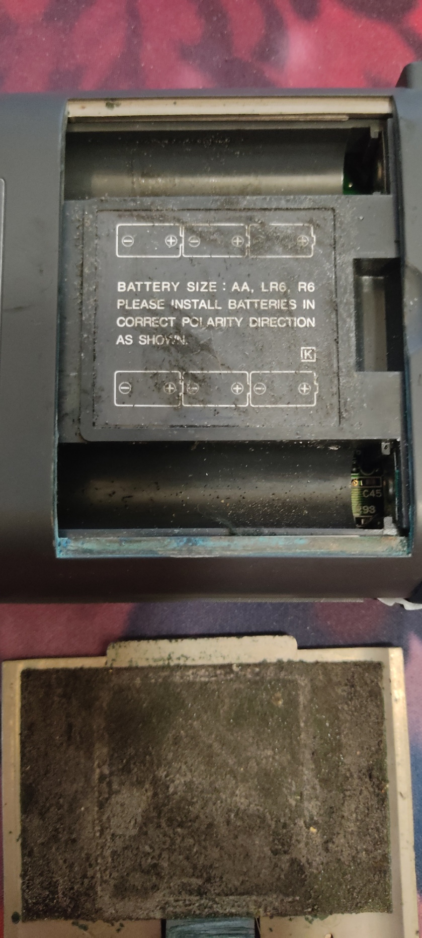 Il a du y avoir coulage de piles avant que je ne l'achète, ça se voit légèrement sur la coque, ça ne m'a pas empêcher de jouer de temps en temps avec des piles (mais ça reste une Lynx 1 donc les piles, il vaut mieux éviter), et la mousse de protection du cache pile est bouffée.