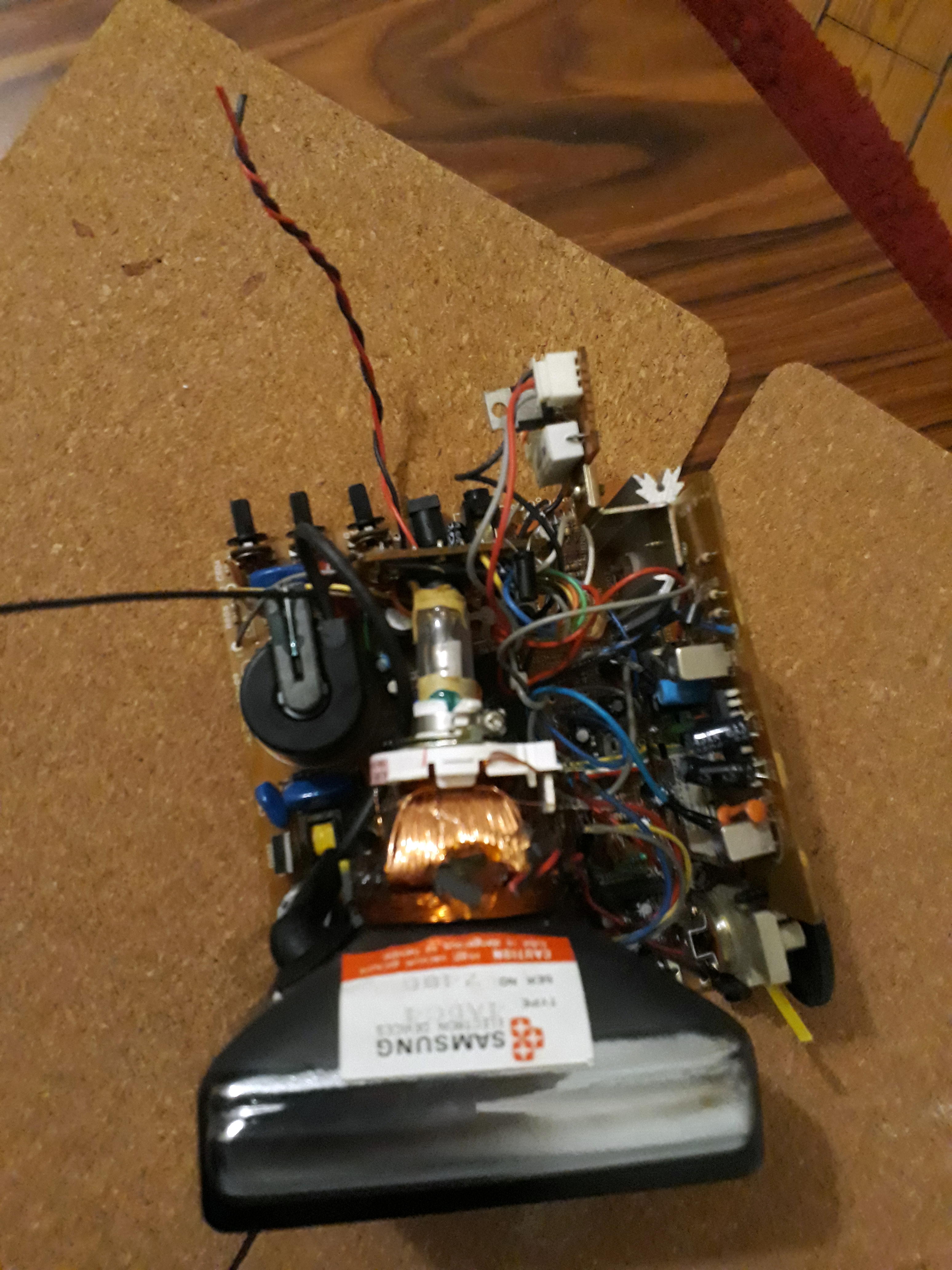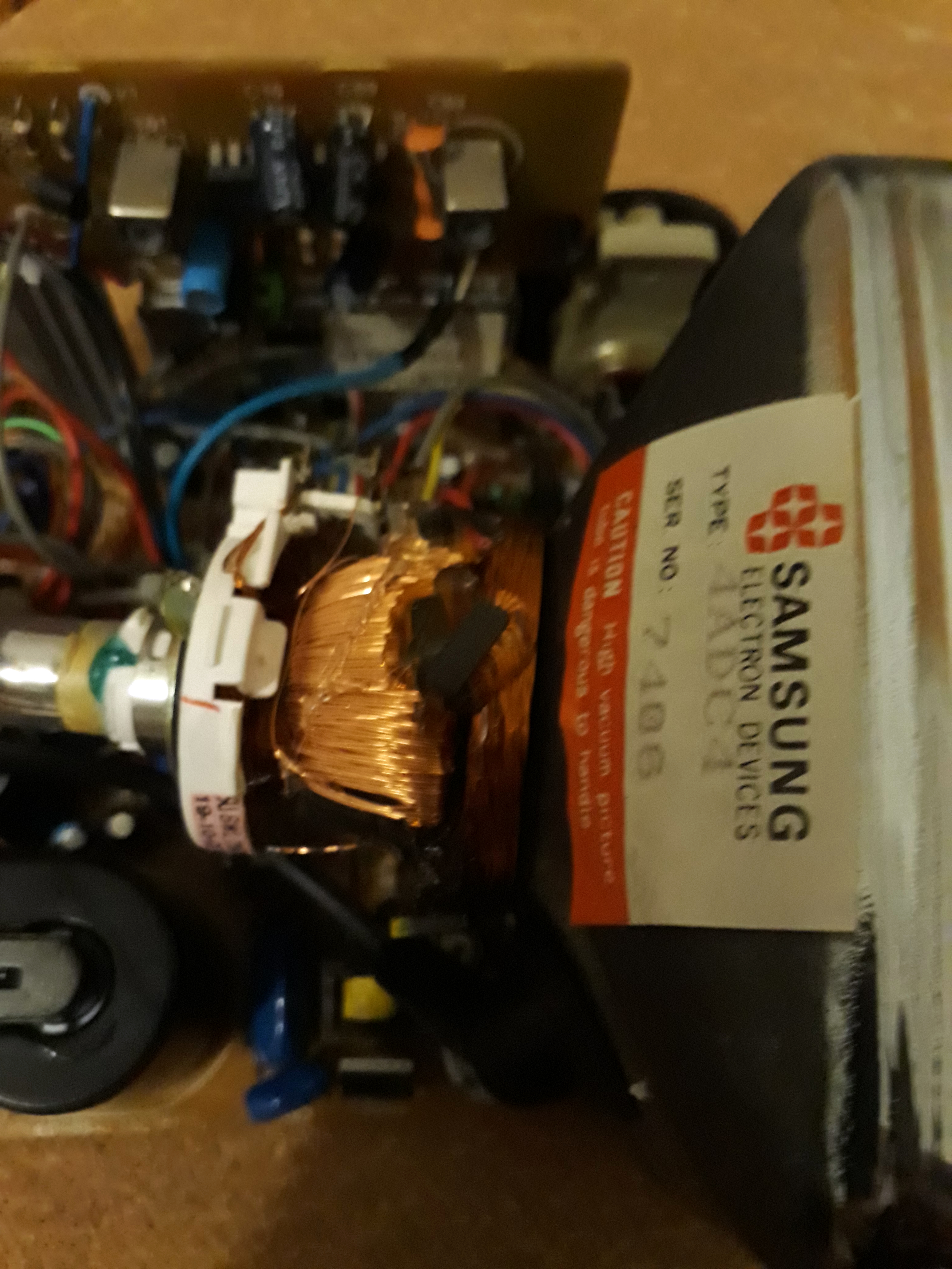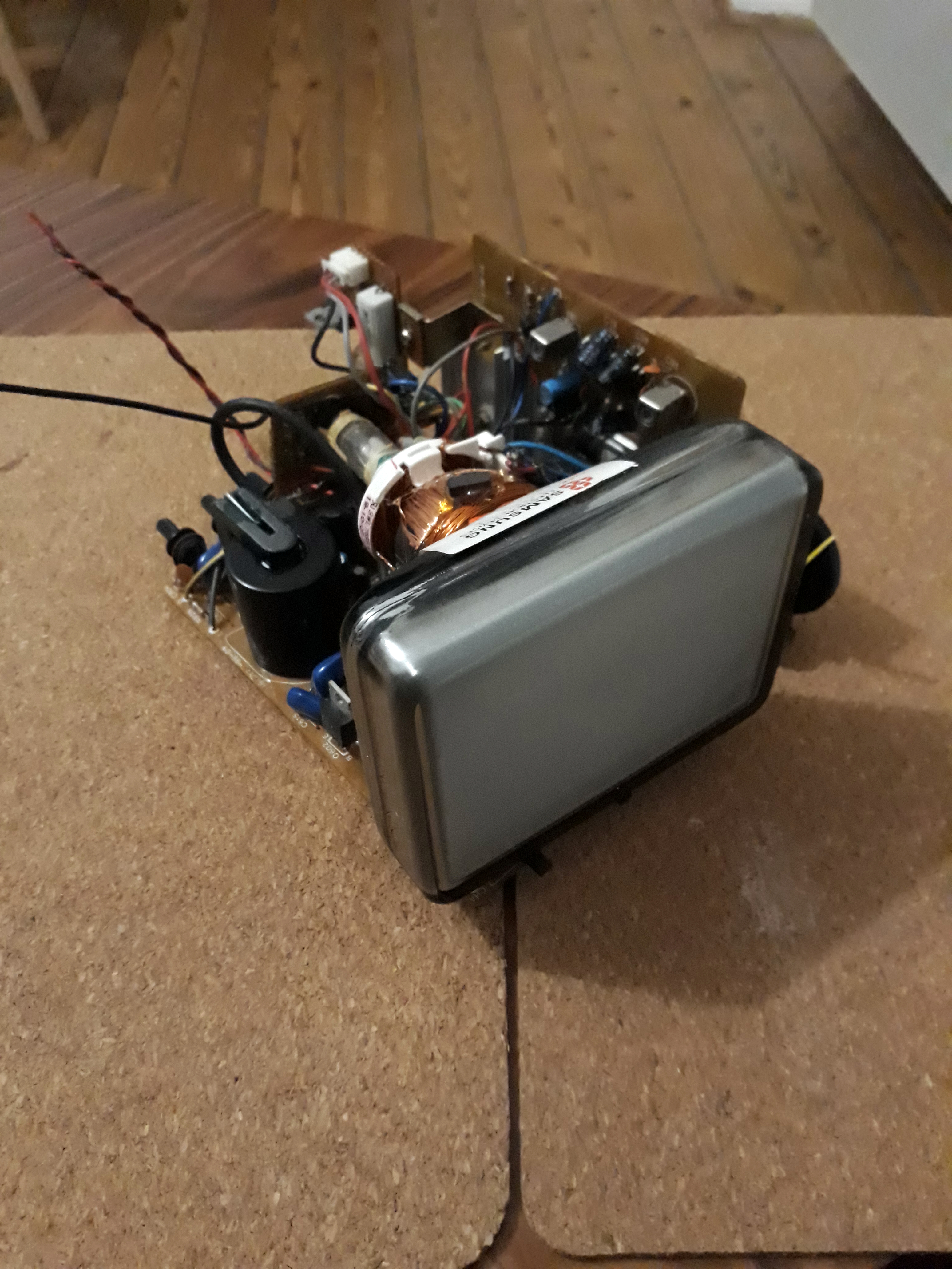 Voici les photos du petits cathodique que je donne, si ça intéresse quelqu'un. à Noter que je ne donne que le tube cathodique vu que je vais récupérer des composants sur le PCB en dessous (que du passif à savoir interrupteurs et molette). Je peux néanmoins vous dessouder et envoyer avec quelques composants actifs qui pourrait servir au fonctionnement du tube (genre le flyback), faut juste me dire le(s)quel(s).