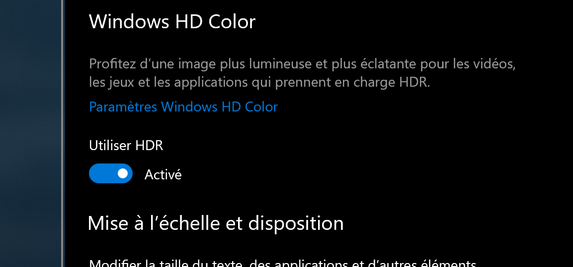 Peut être que tu peux booster la saturation dans le panneau Intel ? En HDR c'est du P3 par défaut sauf erreur, et si ton PC envoie du sRGB (va comprendre) ça va être dégueu. Tu n'arriveras pas avec ça à avoir qqch de parfait (notamment les verts resteront bizarres et les rouges un peu pétants) mais c'est mieux.
