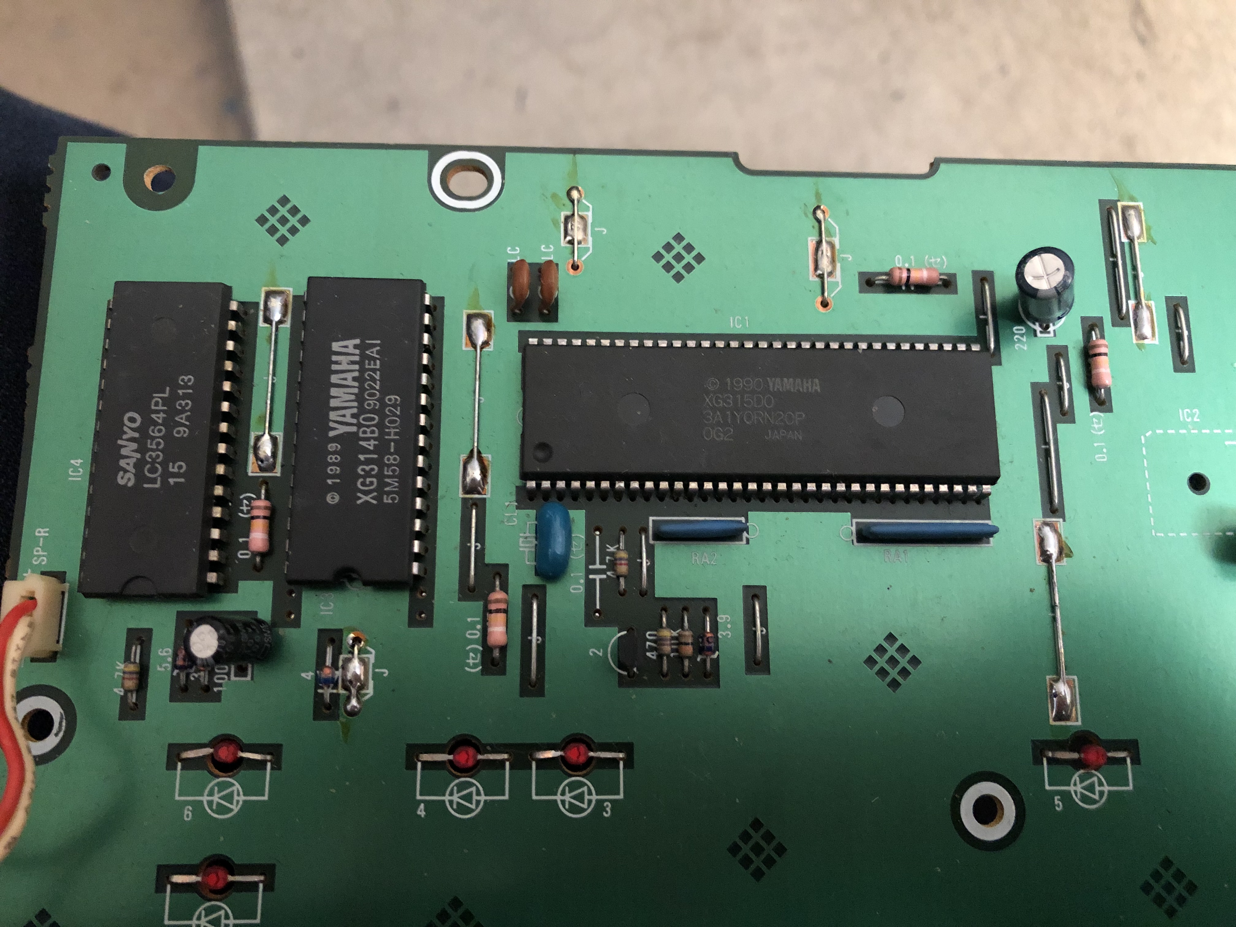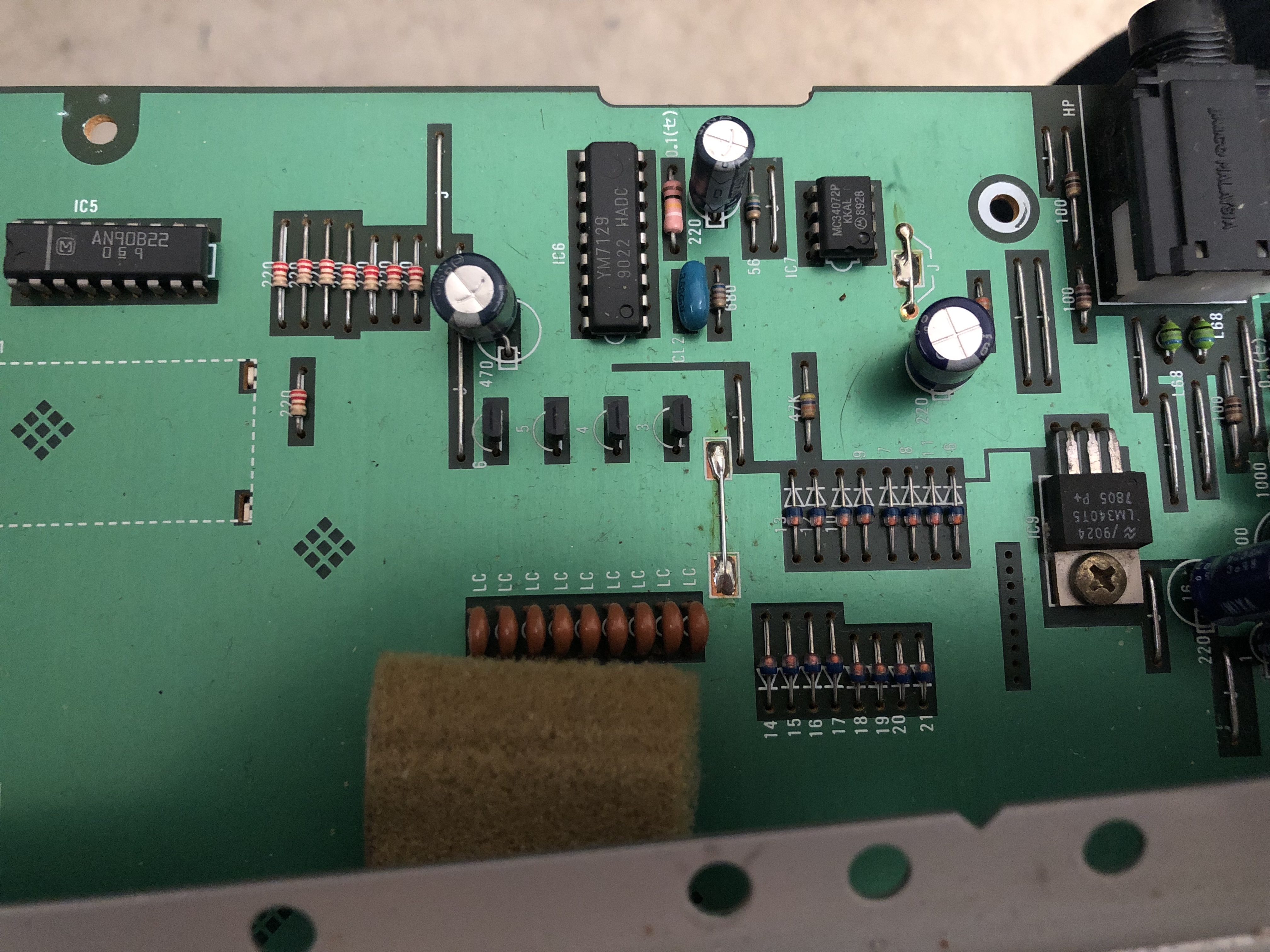 Autre chose etrange, a quelque année d'écart la construction interne est tres differente entre les different synthé. La on sens un produit bien fini, avant c'est un peu plus.. bordelique, entre cable soudé sans connecteurs, jumper sur le PCB a coup de nappes et d'autres trucs amusants.