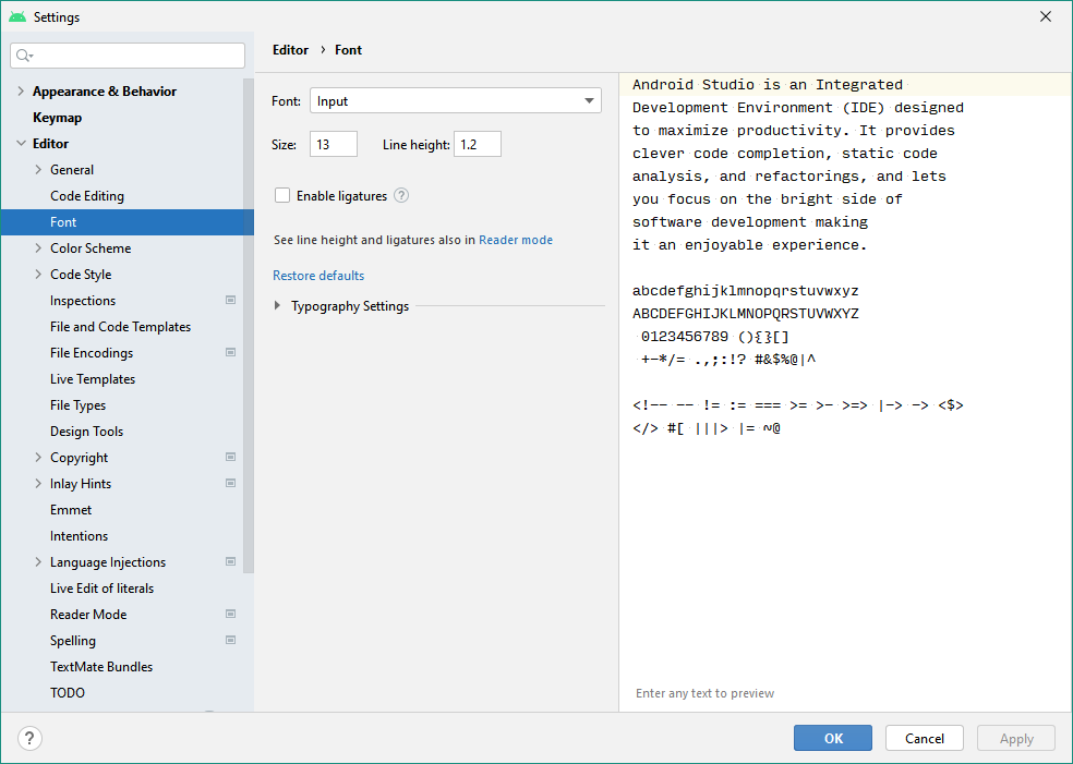 Uther Le 22/05/2022 à 07:52 Ce n'est pas vraiment du remplacement : normalement tu as bien tes deux caractères dans ton fichier texte, ce qui est bien heureux car les compilateurs ne fonctionneraient pas. C'est juste que la police par défaut de l'éditeur de texte doit appliquer des ligatures qui t'affichent ces séquences de caractères de manière attachée a l'écran. il y a de plus en plus de polices monospace pour développeur qui permettent ça. Donc si tu changes la police de l'éditeur pour une sans ligatures, tu devrais avoir un affichage classique.