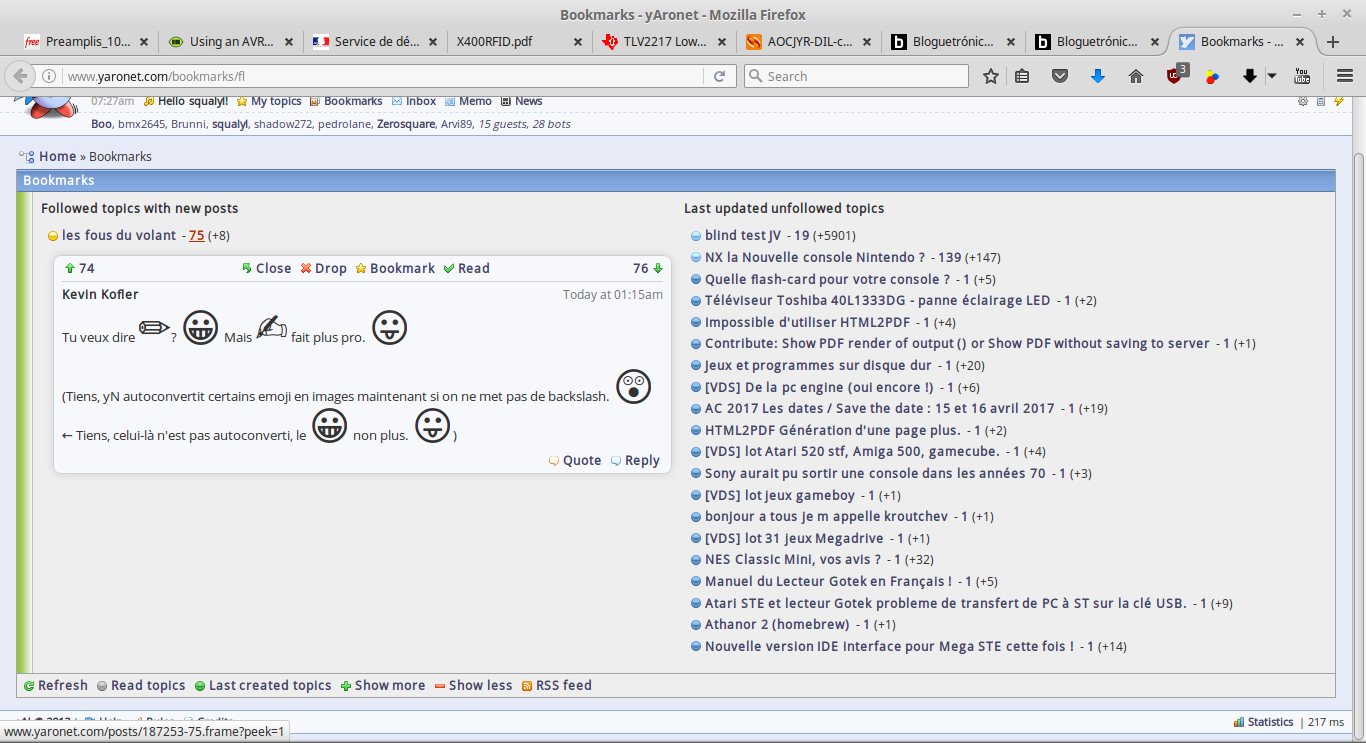 (Tiens, yN autoconvertit certains emoji en images maintenant si on ne met pas de backslash. ? ← Tiens, celui-là n'est pas autoconverti, le ? non plus. ?)