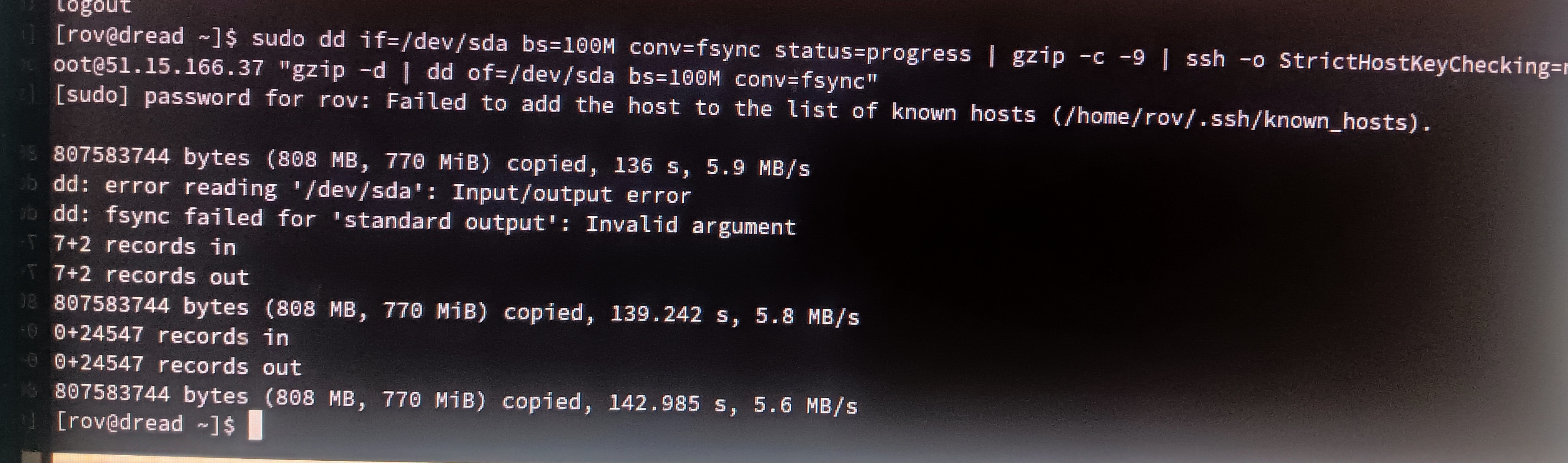 dd: error reading '/dev/sda': Input/output error