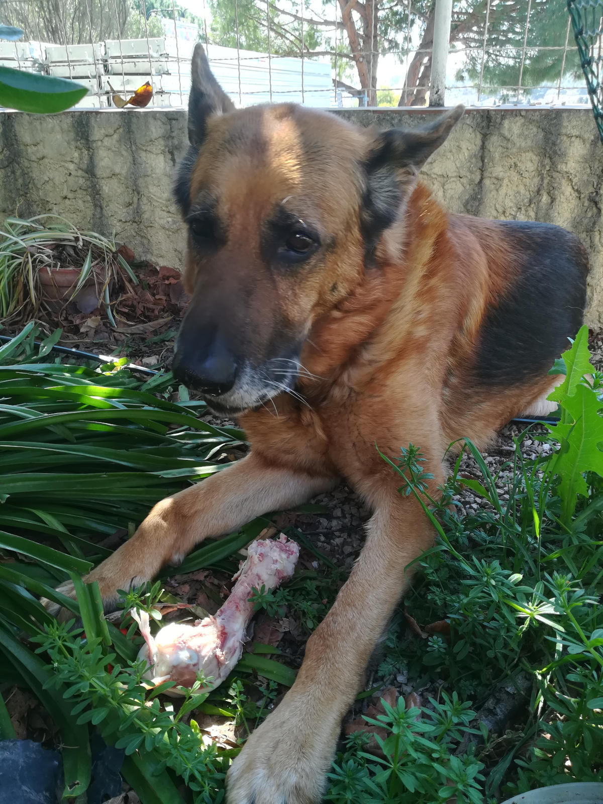 le chien se tapais des aller retour à péter son plomb de chaque coté des branches et qui c'est qui tente de se barrer ... bim coup de pioche séché sur le coup mais c'est pas le gros :- /