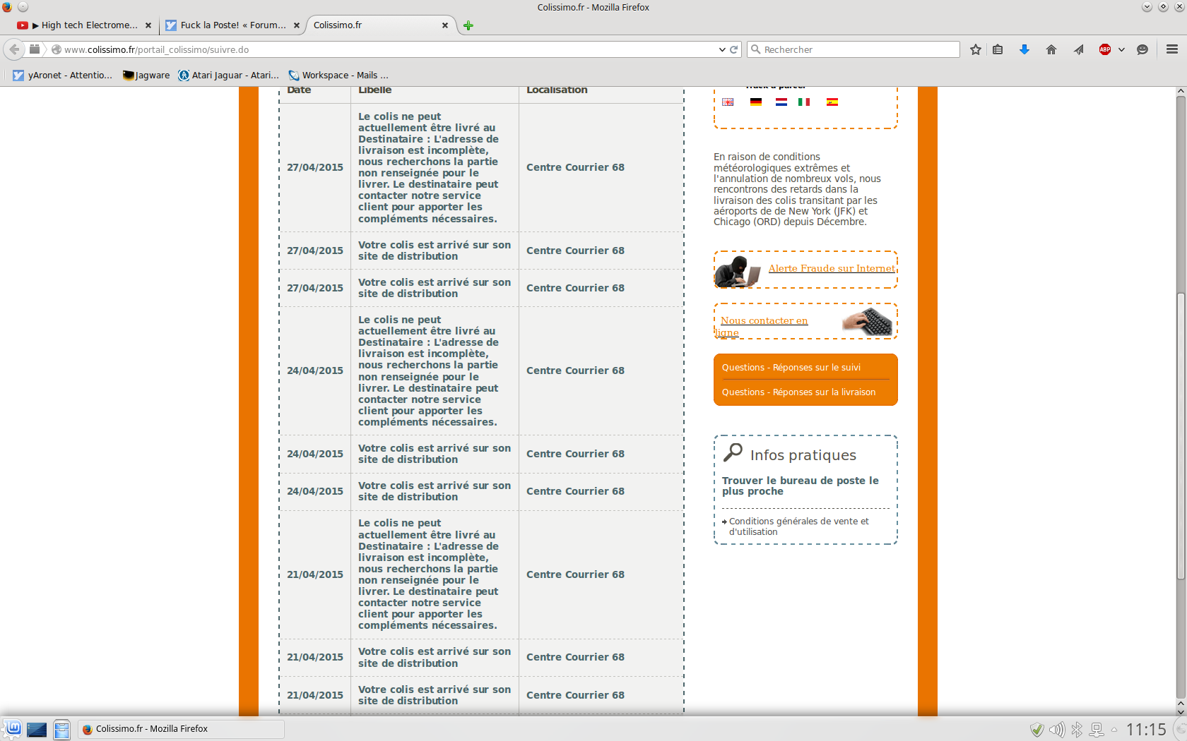 Le prochain coup qu'il me font cela, je laisse le colis ils se débrouilleront avec l'expediteur.