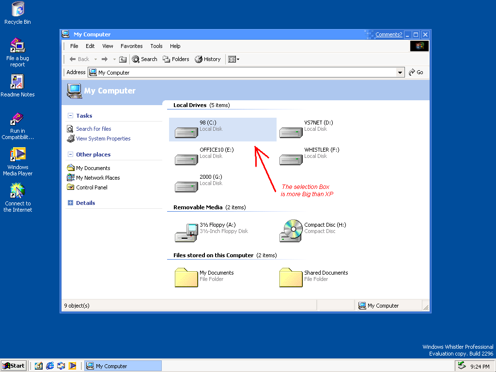 Pour la "ressemblance" avec WinMe, c'est simple, WinMe est basé sur l'interface de Windows 2000 et Whistler est lui meme basé sur Windows 2000...