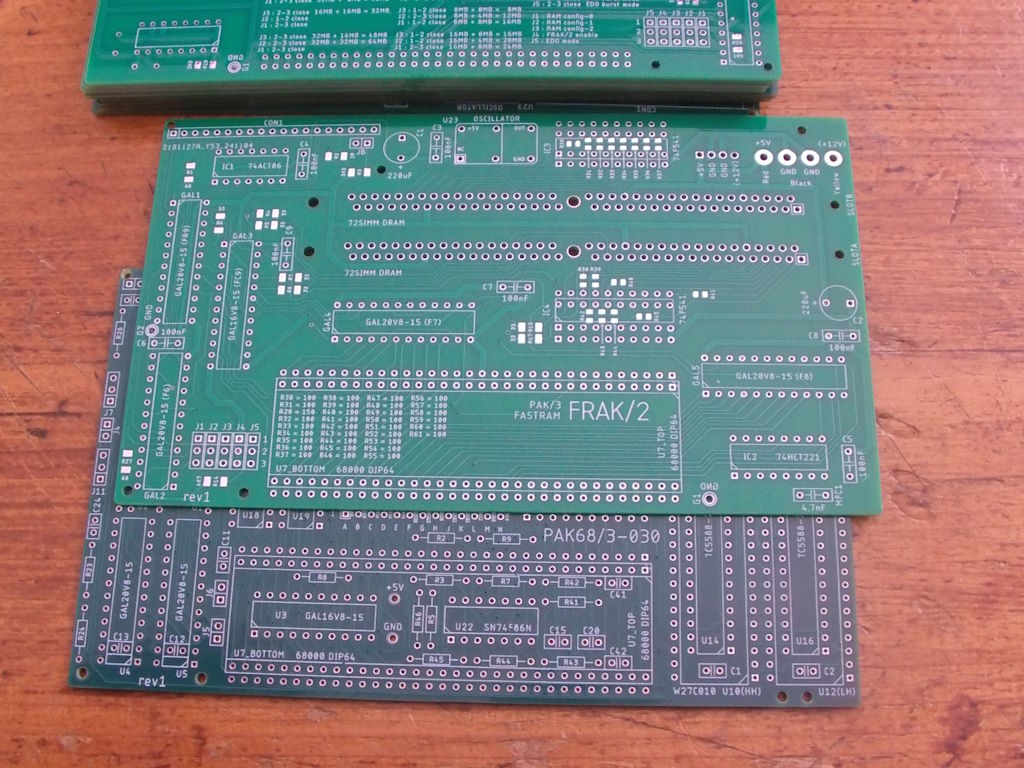 26 € pour les deux (une PCB PAK68K-030 de 4 couches et une PCB FRAK/2 de 2 couches) + port sur mon Paypal cosmos.amiga@gmail.com en mode "gift" uniquement.