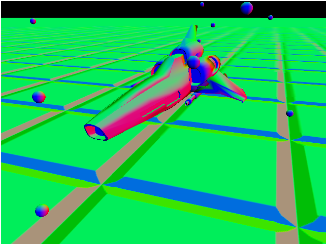 En deferred shading classique donc, pour la passe où j'applique les lumières une à une, j'étais initialement parti pour utiliser des sphères de même rayon que celui des lumières à appliquer. Sauf que pour permettre à un pixel d'être affecté par plusieurs lumières, il faut désactiver le depth test pour que les sphères se superposent, mais ça provoque un effet indésirable : quand on est à l'extérieur de la sphère l'affichage de la face avant et de la face arrière fait que chaque pixel est dessiné deux fois, donc la lumière est appliquée deux fois également, donc ça foire, donc c'est nul.