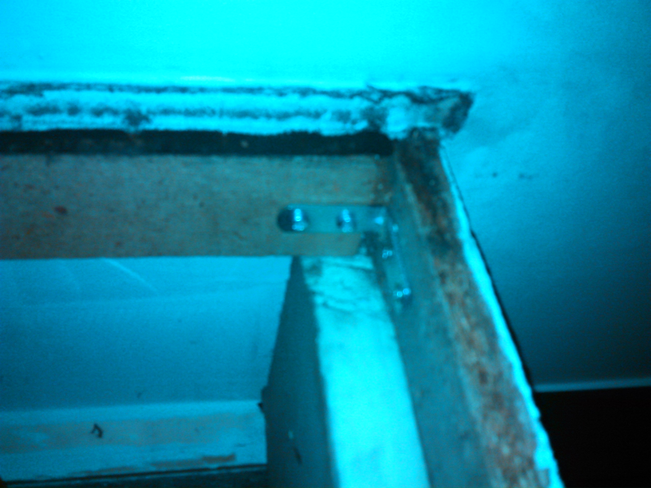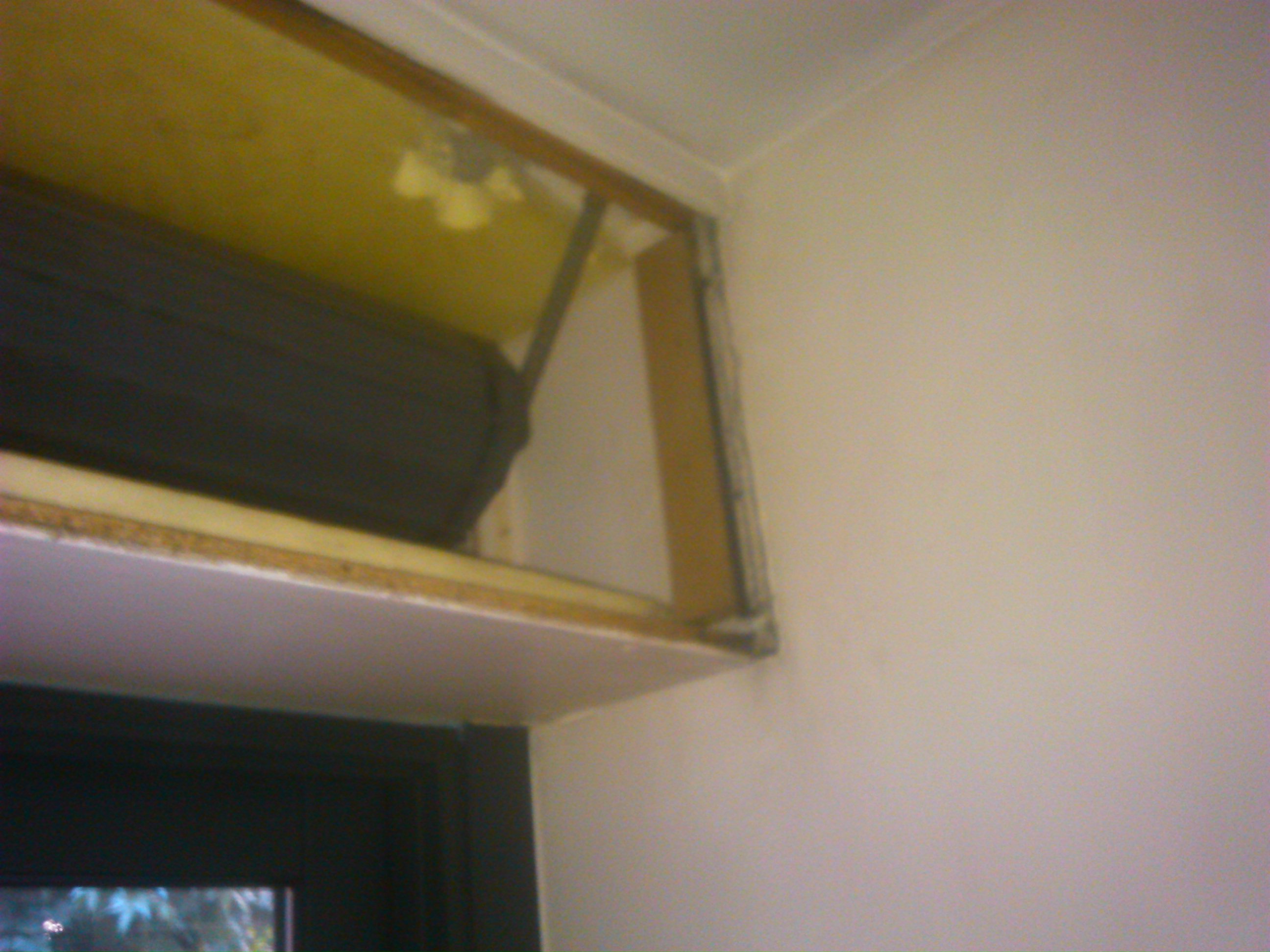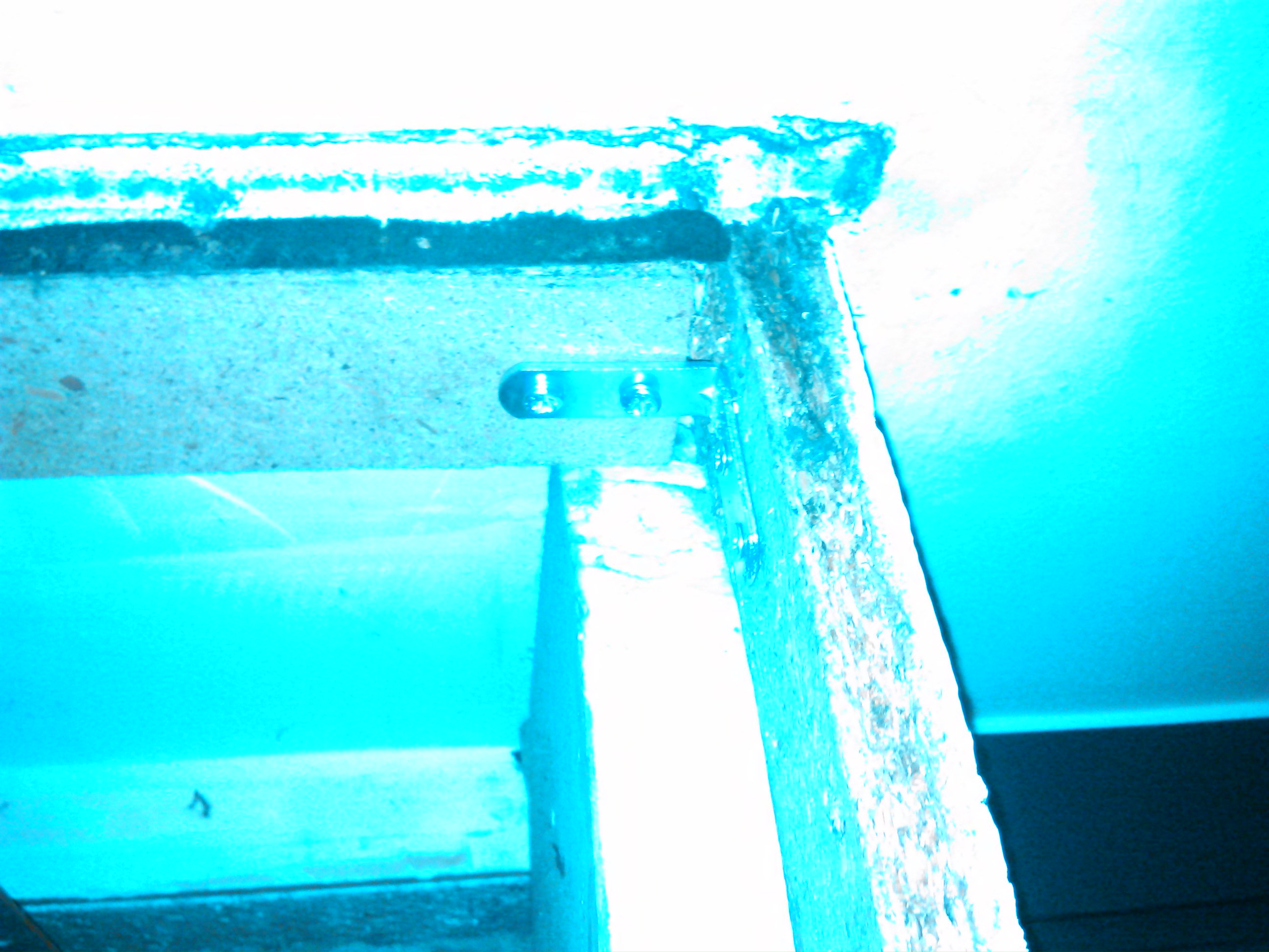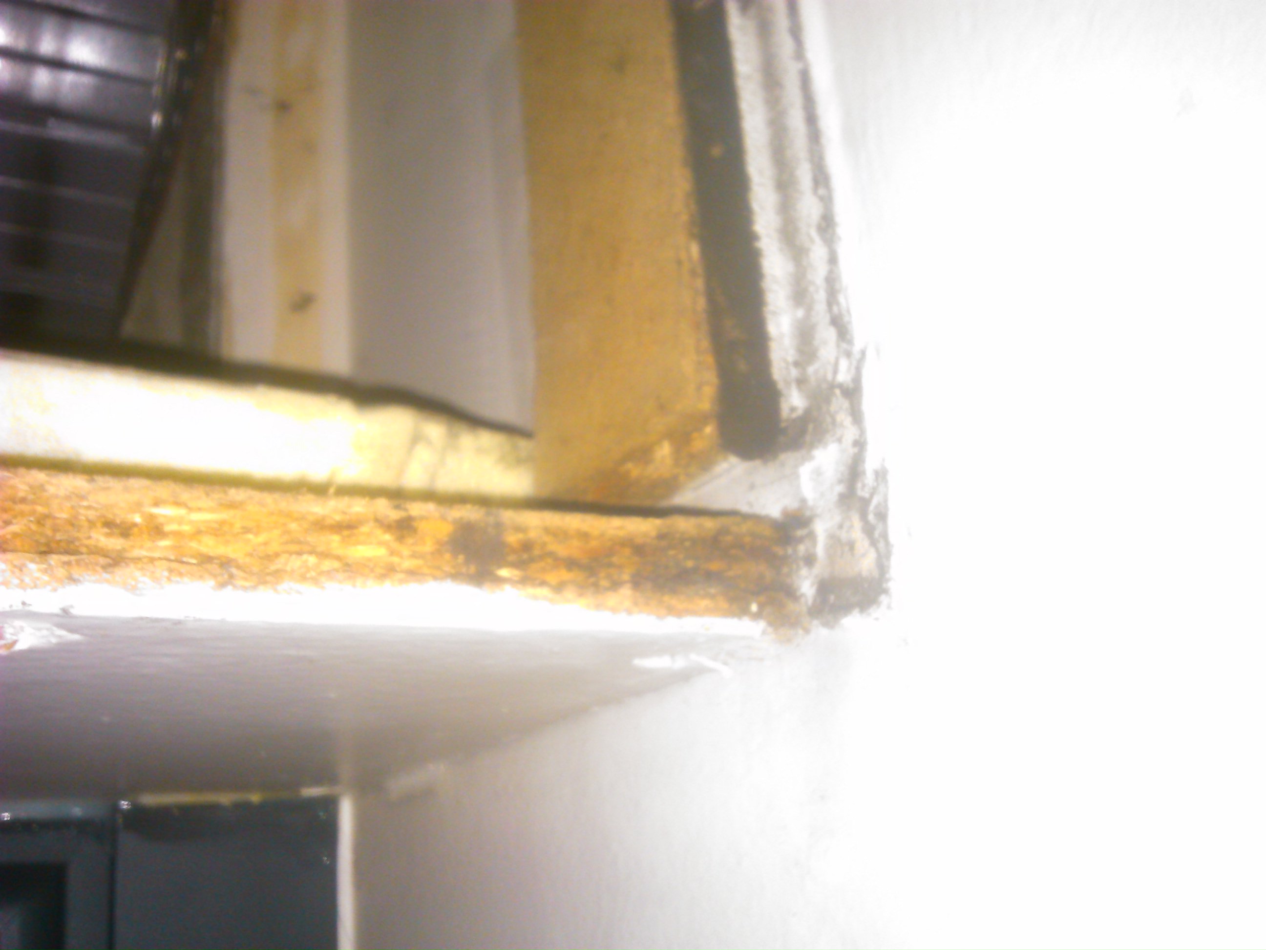 J'ai eu une petite surprise en revenant de vacances, le bas du coffre qui sert à contenir le store déroulant d'une porte-fenêtre chez moi s'est affaissé de quelques centimètres. Comme j'aimerais dans la mesure du possible qu'il ne me tombe pas sur la tronche au mauvais moment, j'ai démonté pour voir ce qui avait lâché et voilà une version très floue du résultat :