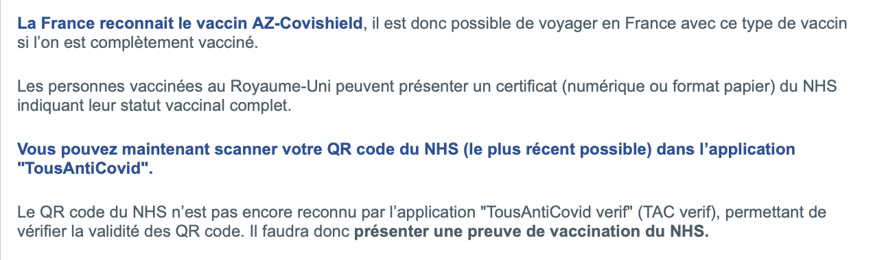 Pour Godzil (entre autres) : franceinfo: Pass sanitaire : l'accès au certificat va être simplifié pour les expatriés français vaccinés à l'étranger.Pass sanitaire : l'accès au certificat va être simplifié pour les expatriés français vaccinés à l'étrangerFranceinfoLe secrétaire d'Etat au Tourisme a annoncé dimanche la mise en place d'un dispositif spécifique à destination des Français expatriés.