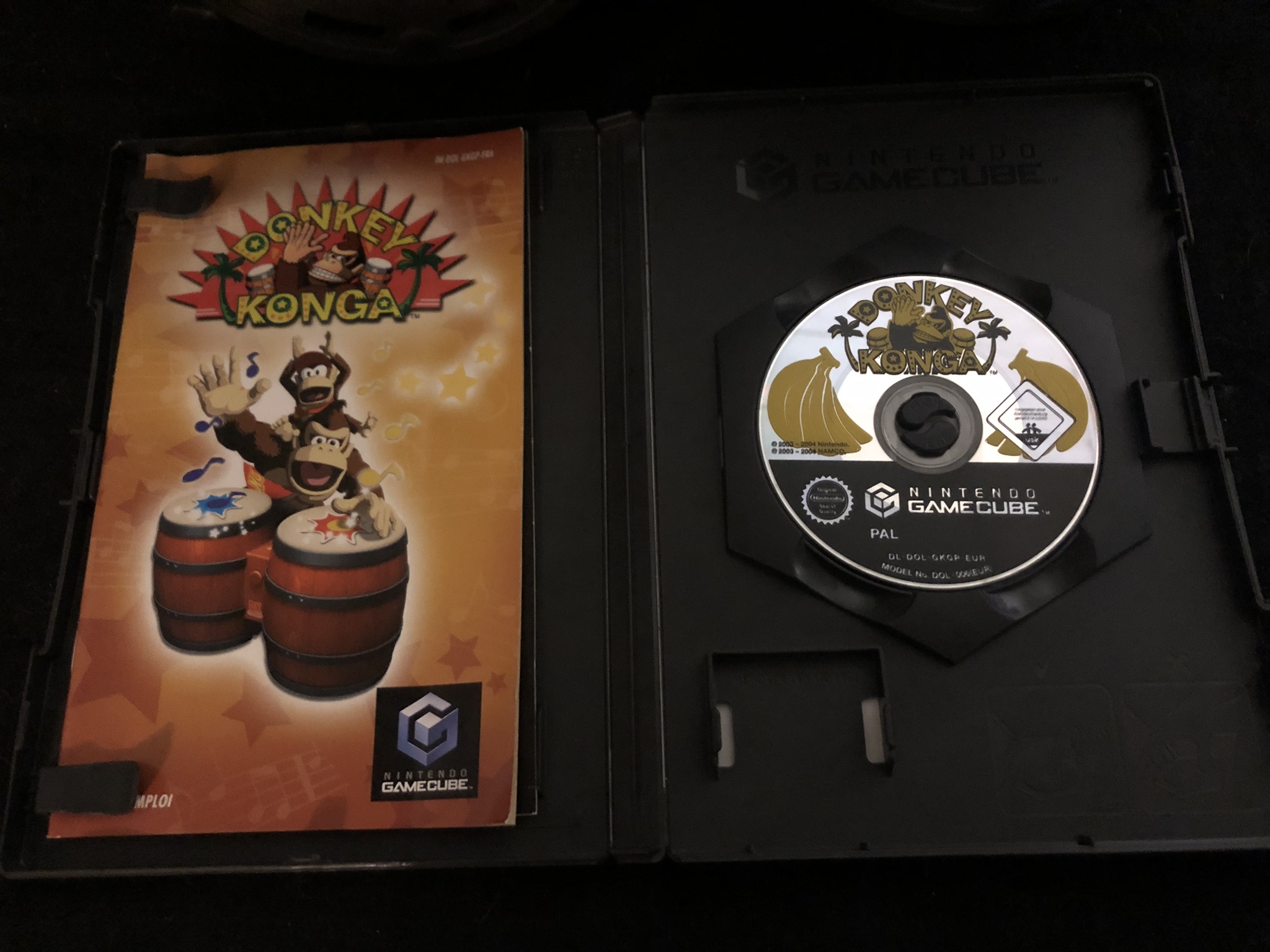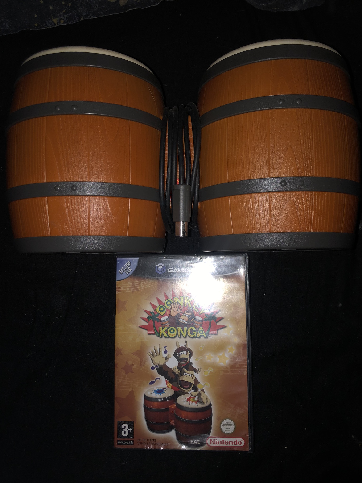 Bongos + jeu Donkey Konga complet NON FONCTIONNEL offert (disque très rayé, pas visible sur la photo déso) : 20€