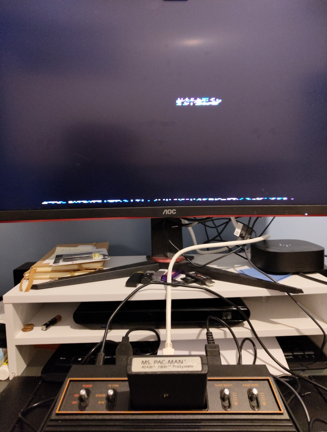 Je viens d'acquérir sur lbc Ms Pacman 7800. Ce jeu est normalement compatible avec l'Atari2600+ si on en croit la liste officielle de compatibilité. Mais j' ai une image tronquée qui rend le jeu injouable.