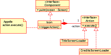 Sinon, une façon très confortable de résoudre le problème est d’utiliser un mécanisme de signals/slots, similaire à celui fournit par Qt ou Boost. C’est un peu plus long à coder (sauf si tu utilises directement celui de Boost), mais c’est très pratique, tu peux directement relier un événement (l’activation d’une icône) à n’importe quelle méthode de ta classe (donc tu as juste besoin d’écrire une opération par action, et pas une classe).