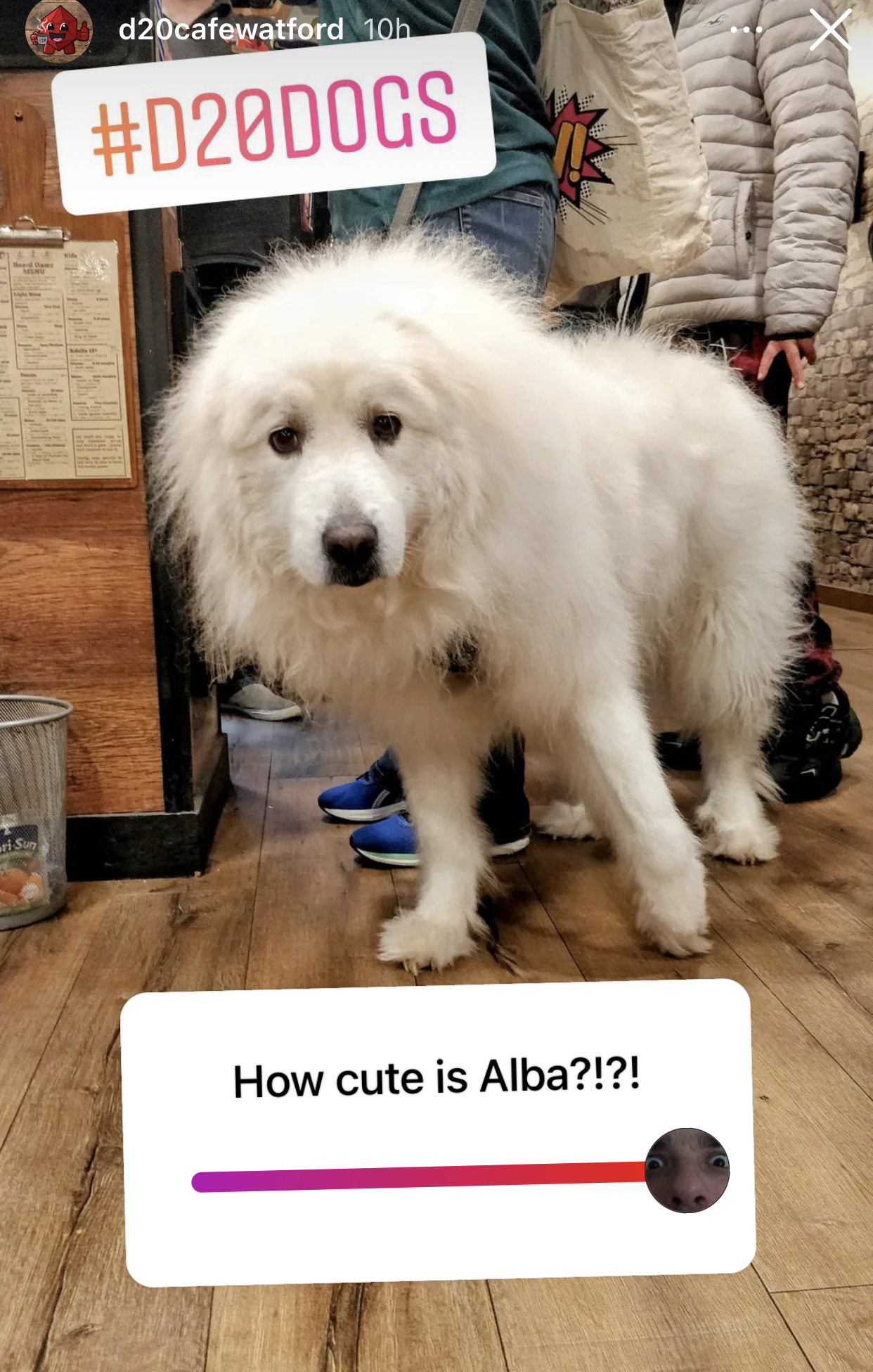 J’ai ou la caresser un peu. Elle est énorme et super fluffy, je vois rarement des chien aussi large