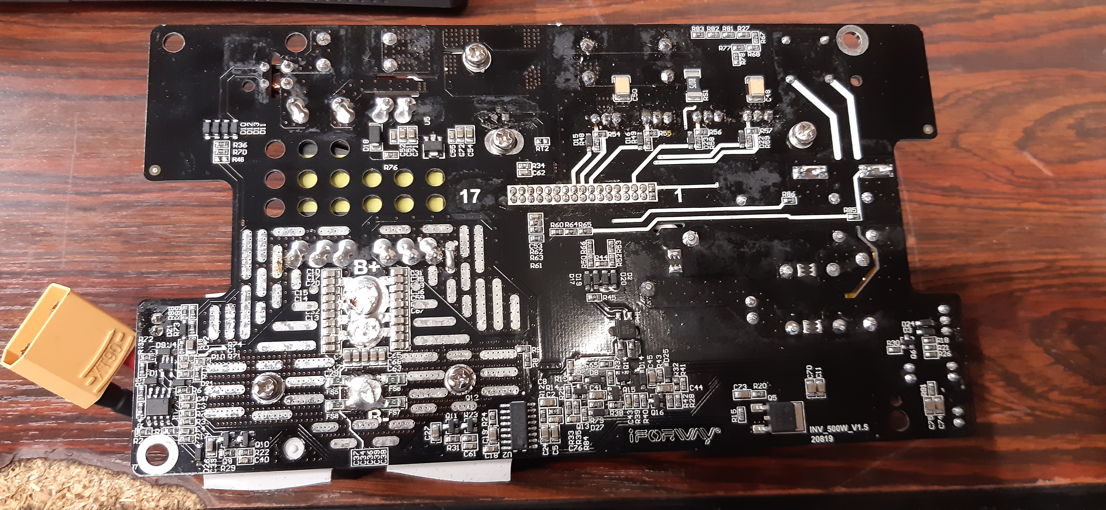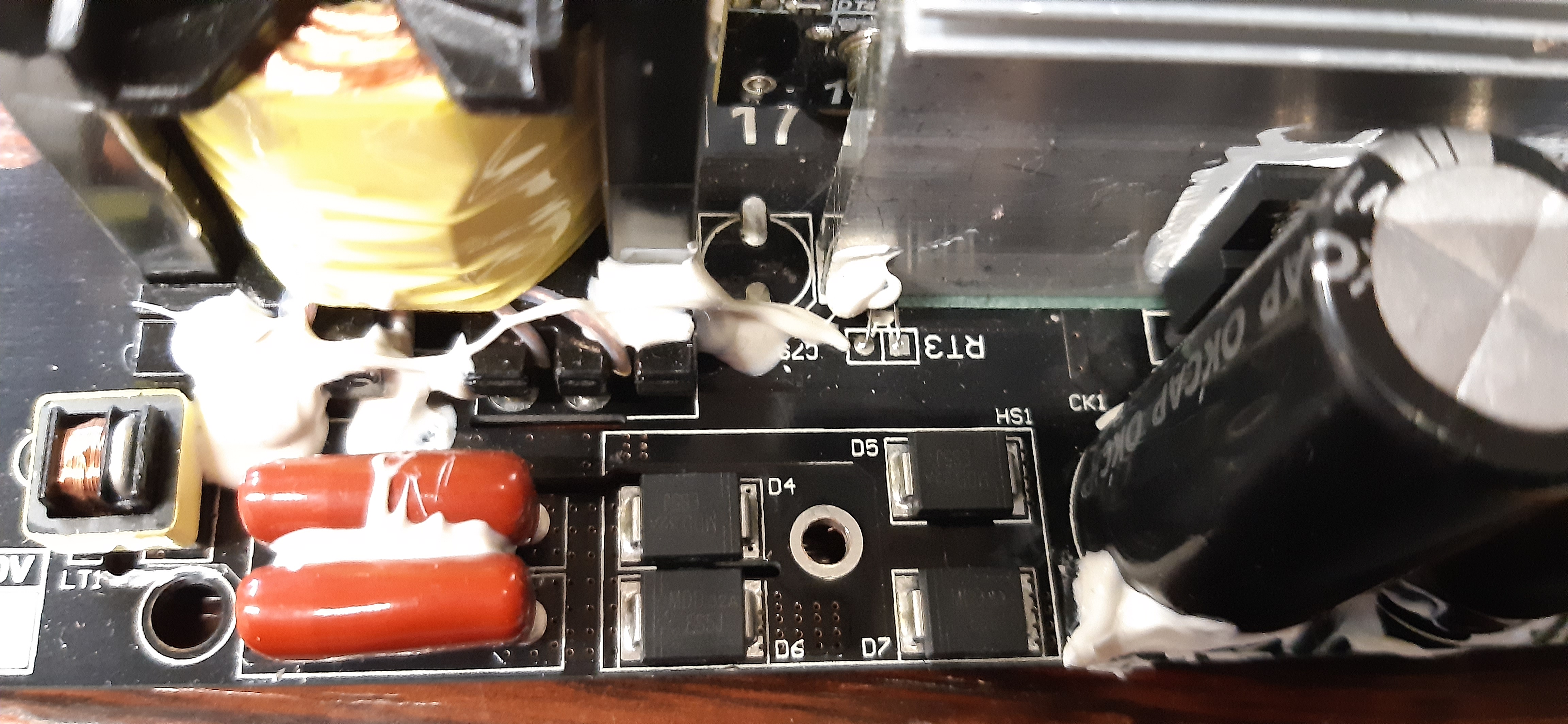 Nhut > je pense pas qu'un condensateur ait grillé suite à une surcharge. Je regarderais plutôt du côté des transistors qui sont vissés sur les dissipateurs (par exemple Q17 à Q20).