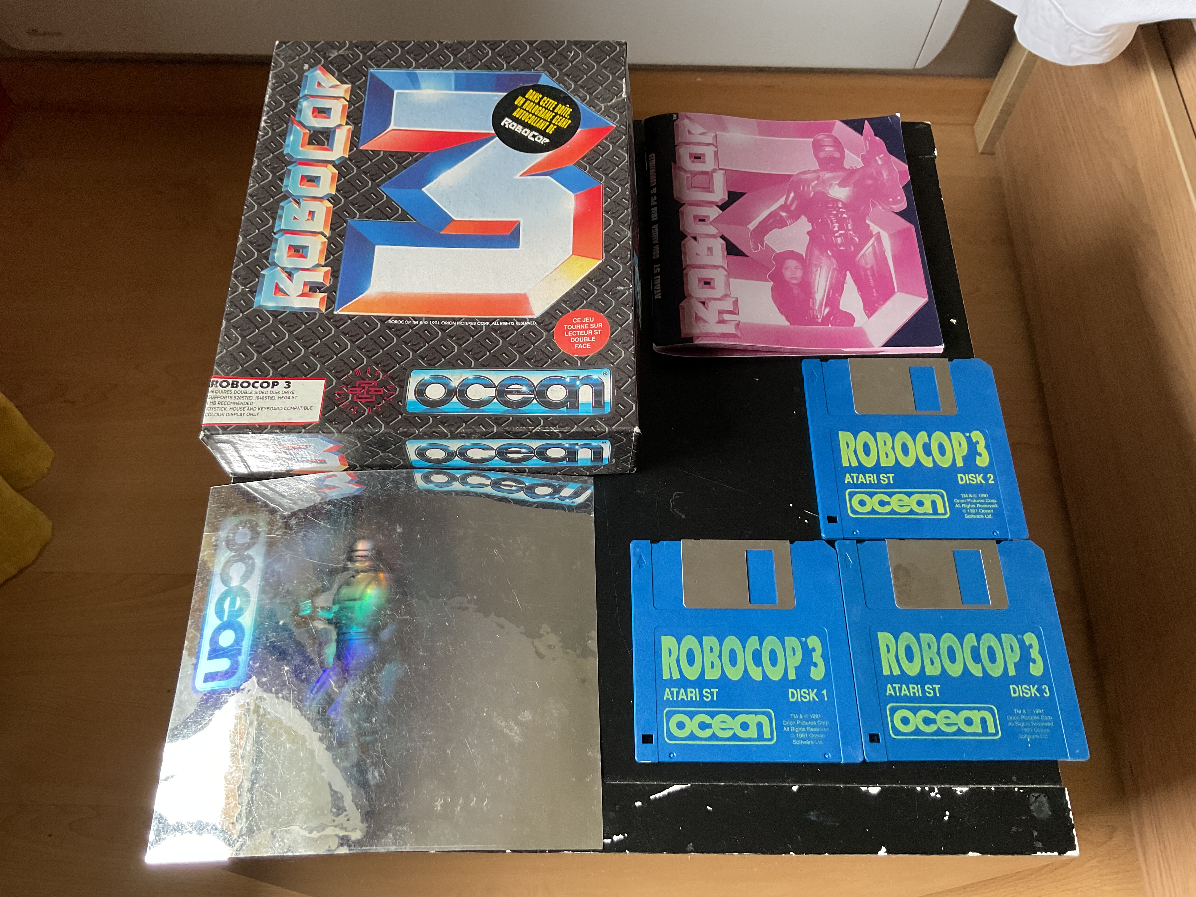 Ma question porte principalement sur le jeux Robocop 3. Ce dernier est accompagné d'un hologramme. D'après mes recherches il est présent dans toutes les boîtes, mais je ne trouve que peu de site ou forum qui en parlent, et aucune ventes (en cours ou réussies) ne comporte cette hologramme.